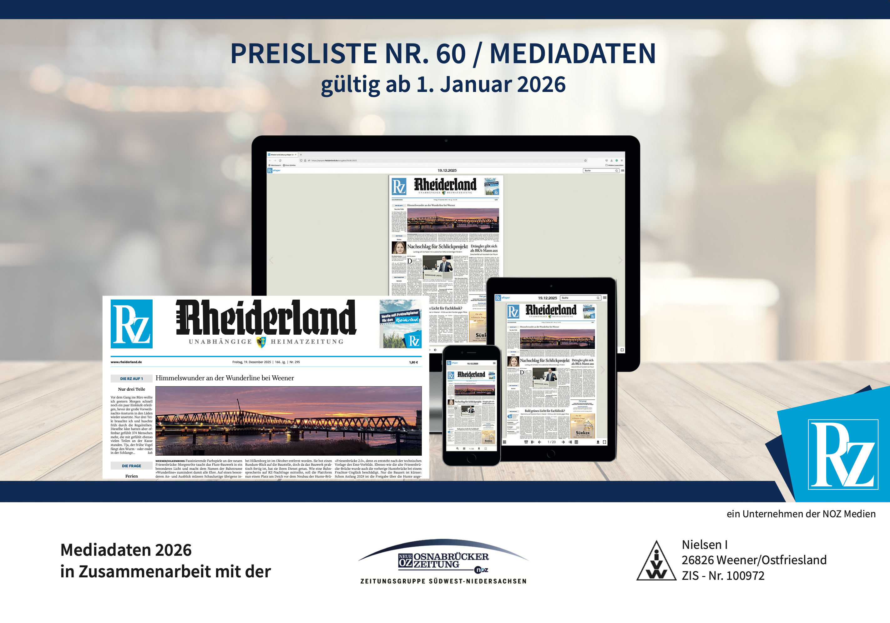 Unsere ab dem 1. Januar 2026 gültigen Mediadaten für Print, können Sie ganz bequem als PDF hier herunterladen. Dazu müssen Sie einfach nur die unten stehende Grafik anklicken
