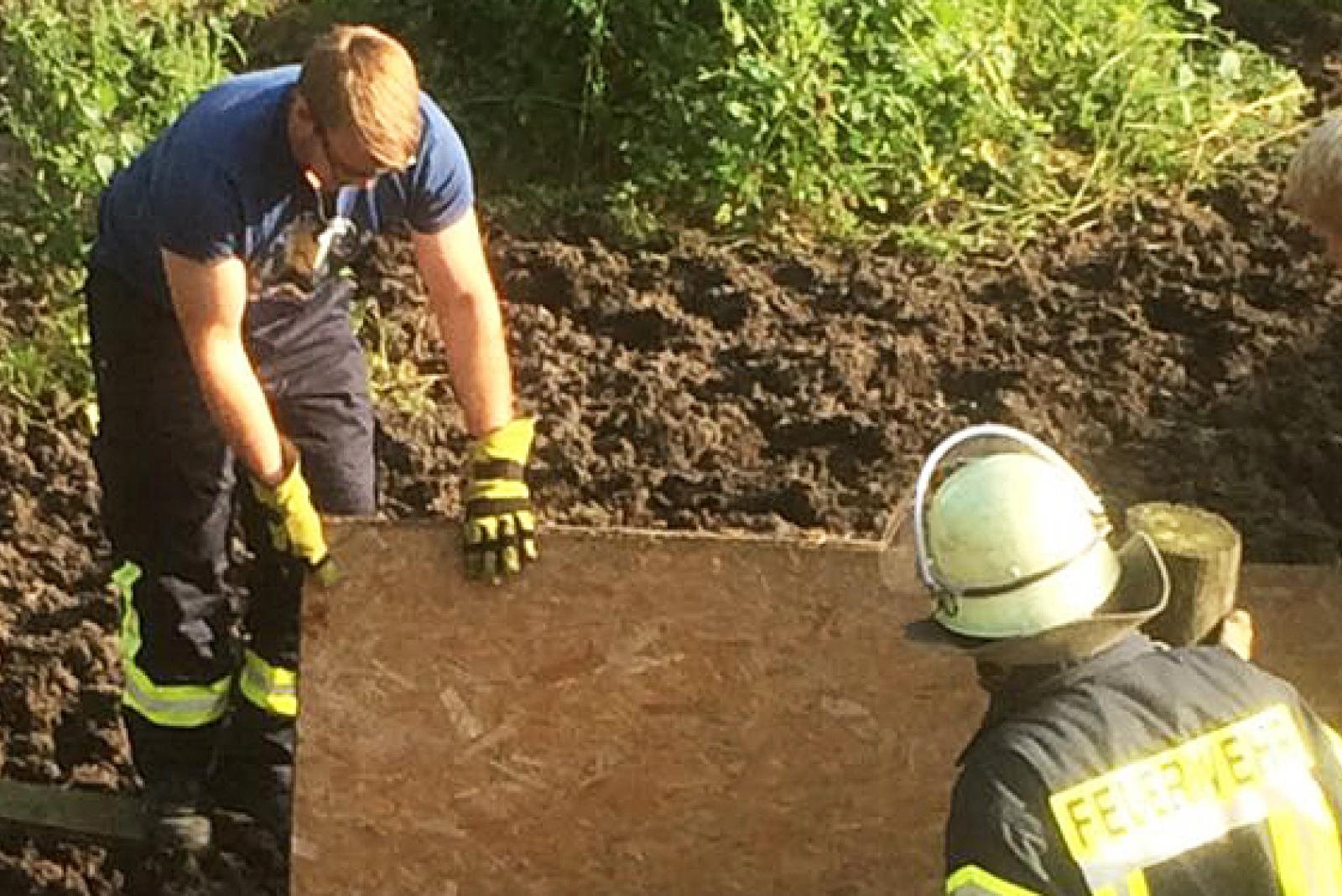 Das Veterinäramt des Landkreis Leer hat am Samstagnachmittag um 17.06 Uhr die Feuerwehr in Ihrhove zur Hilfe gerufen. Auf einem Hof war ein Kalb in ein Schlammloch geraten und steckte dort fest.