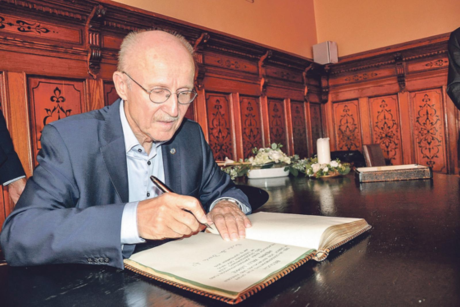 Der UN-Sonderberater für Sport hat sich ins Goldene Buch der Stadt Leer eingetragen