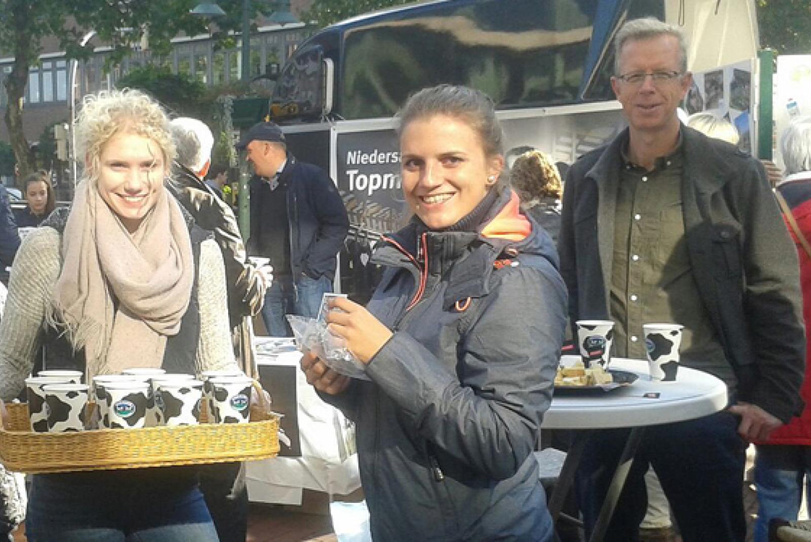 Das achte Mal in Folge schenkten die Milchbauern vom Kreisverband Leer des Landwirtschaftlichen Hauptvereins (LHV) anlässlich des verkaufsoffenen Gallimarktsonntags Milch aus und verteilten Käsespezialitäten aus der Region, so der LHV in einer Pressemitteilung.