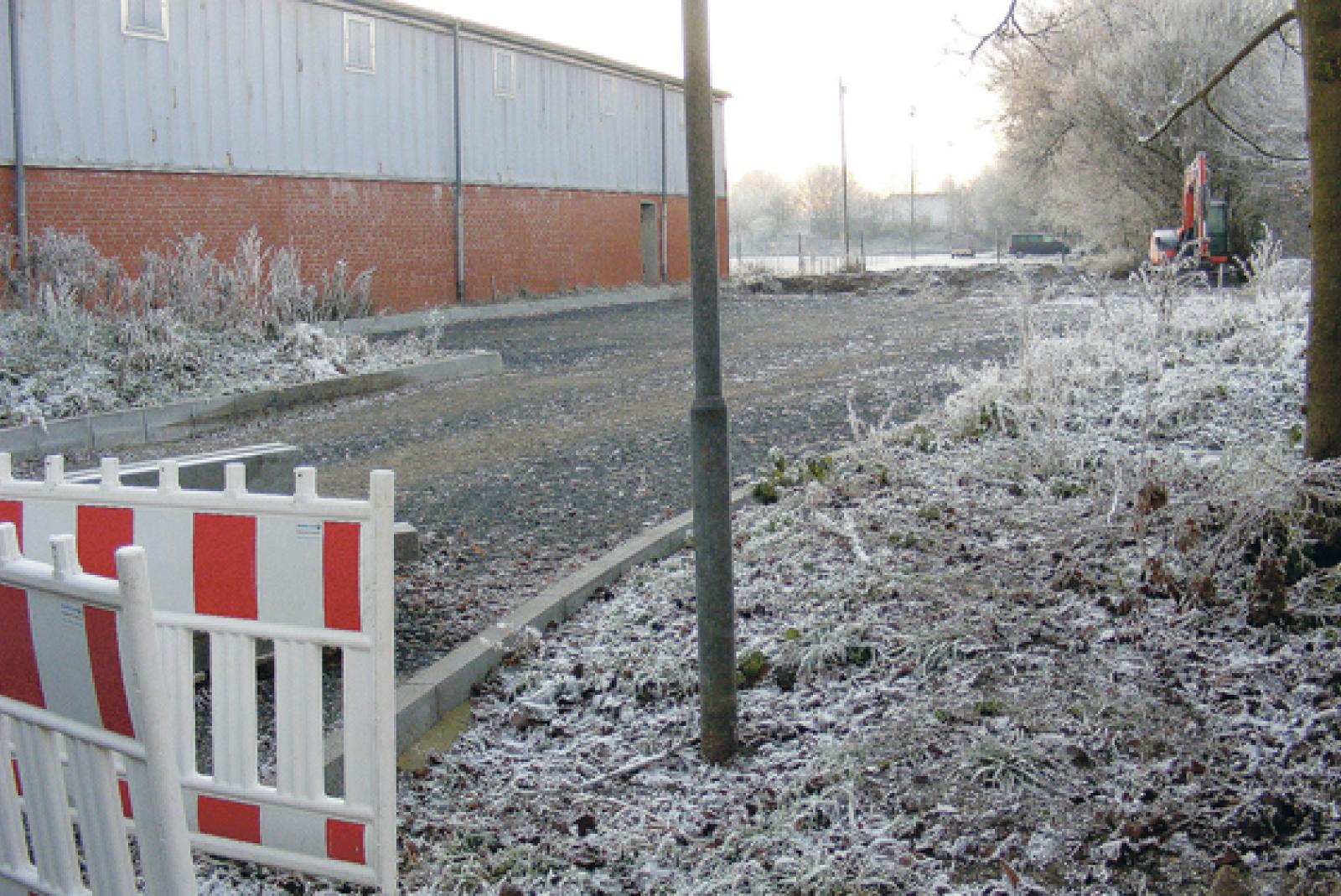 Nachbesserungen in Bingum - Neuer Parkplatz wird nach Stillstand gepflastert