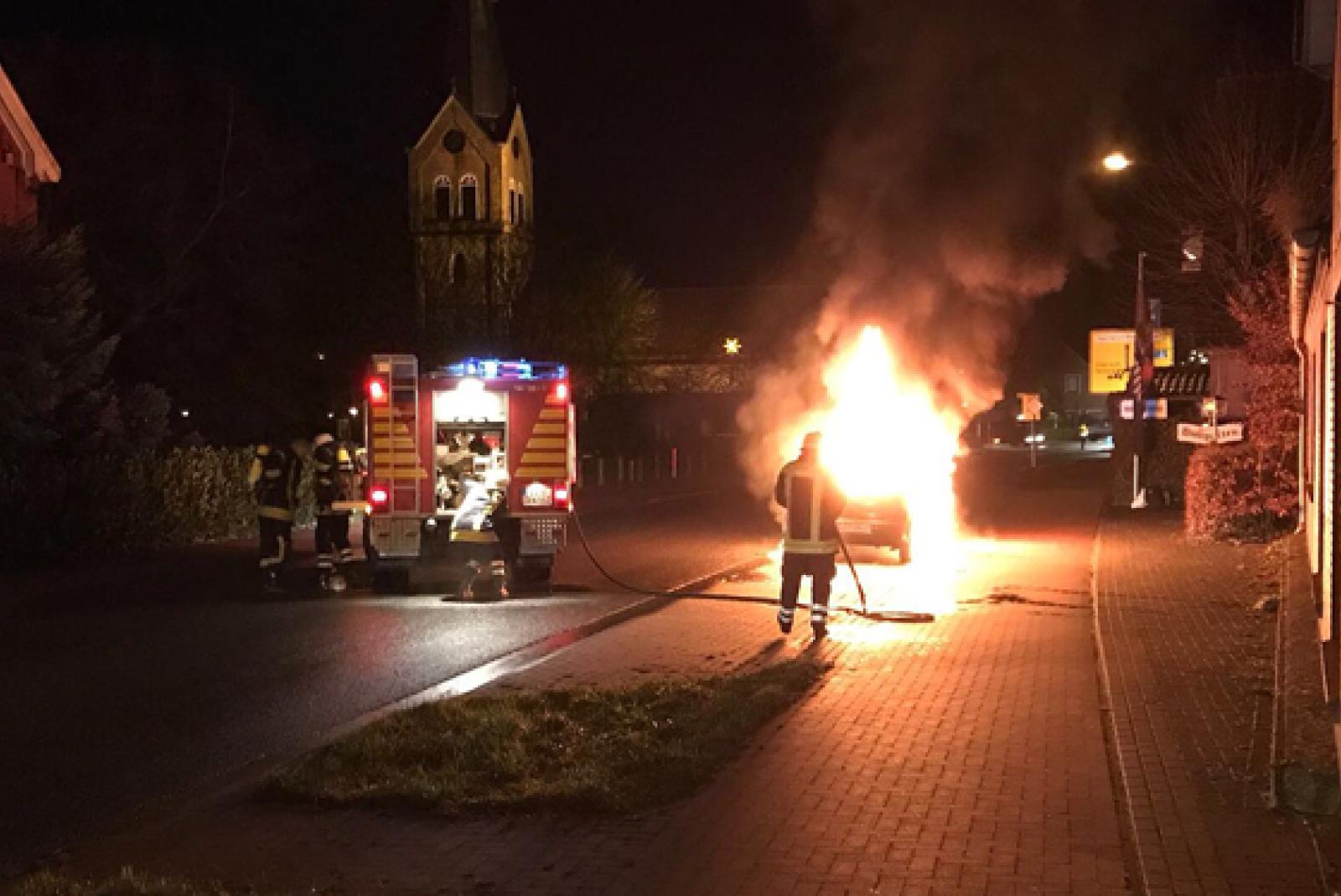 Die Feuerwehr Neermoor wurde am frühen Montagmorgen in die Süderstraße gerufen. Ein Auto stand hier in Flammen und brannte völlig aus.