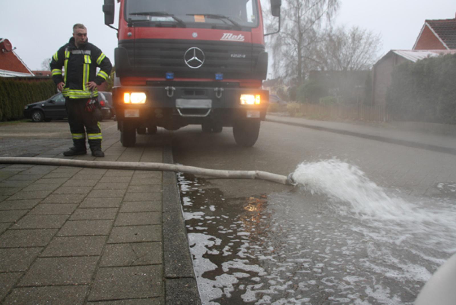 In einem Reihenhaus am Hirtenweg in Leer hat die Feuerwehr heute Mittag den Keller einer Wohnung leergepumpt.