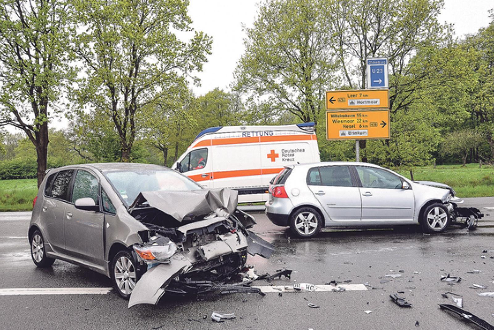 Ein Verkehrsunfall mit zwei Verletzen hat sich heute um 11 Uhr auf der Bundesstraße 436 in Nortmoor ereignet. Zwei Autos waren zusammengestoßen.