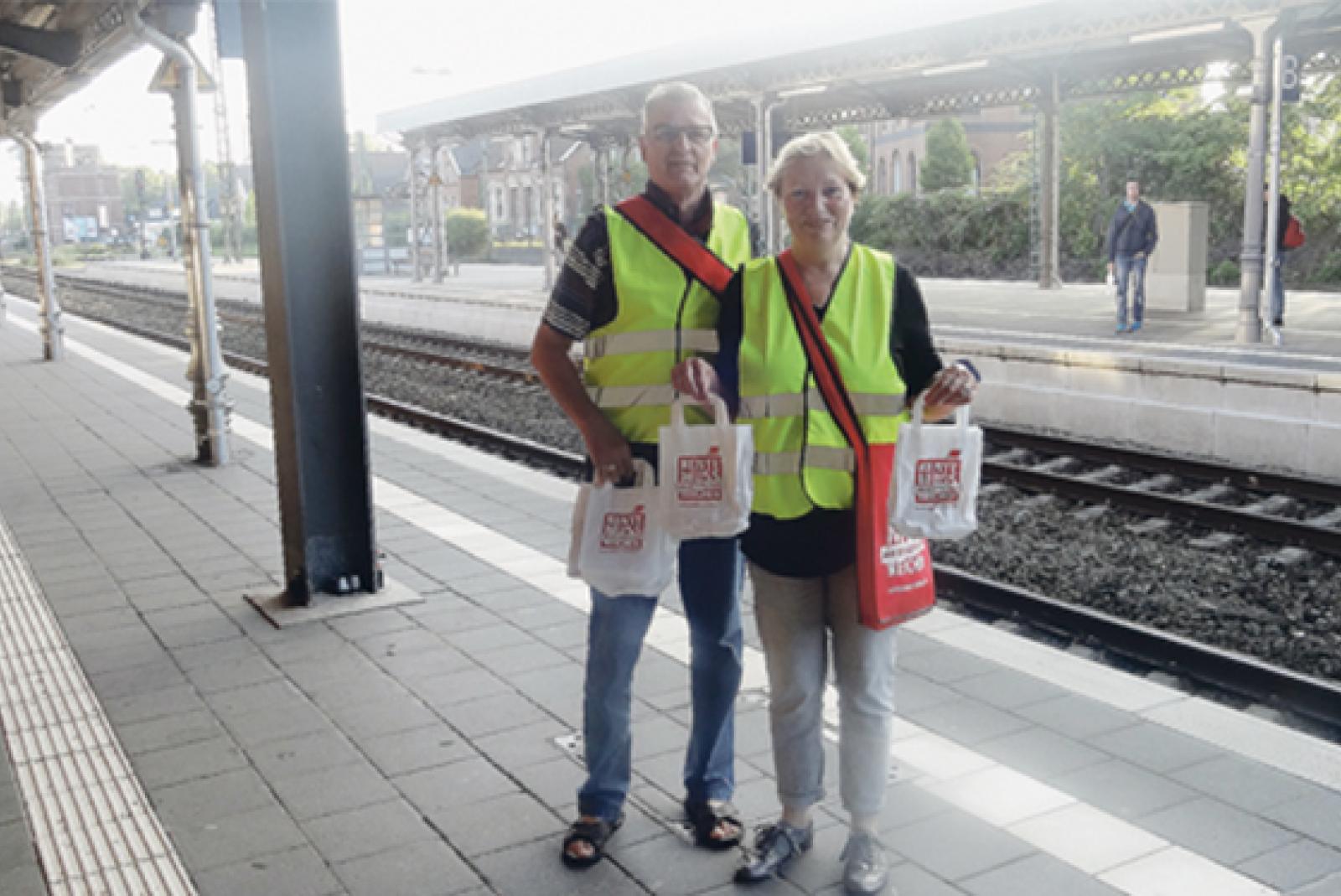 Im Einsatz für eine angemessene und verlässliche Rente: Am frühen Mittwochmorgen haben sich Mitglieder des Ver.di Ortsvereins im Landkreis Leer an einer bundesweiten Protestaktion beteiligt. Am Leeraner Bahnhof wurden Pendlern kleine Aktionstüten überreicht.