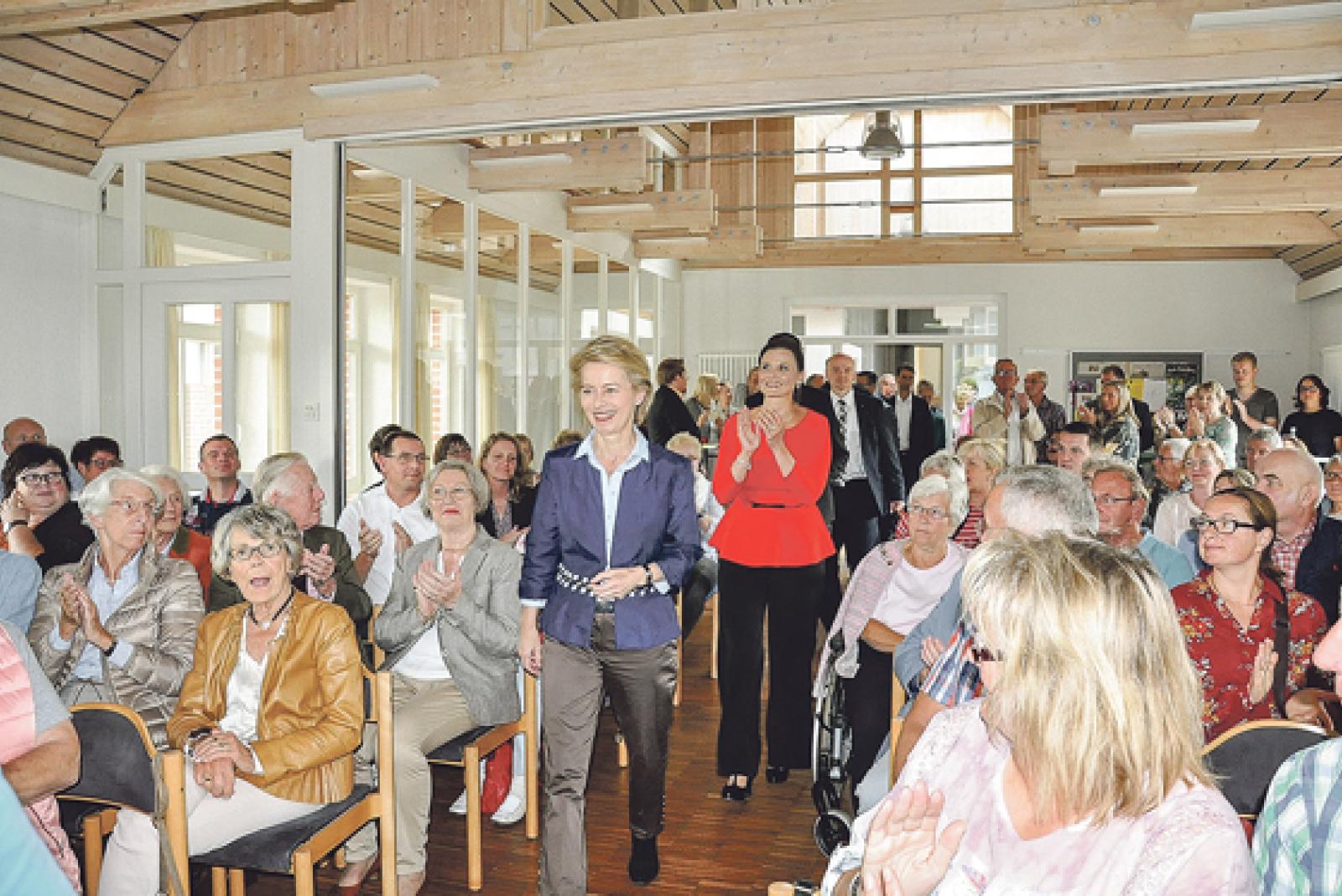 Auf dem »schwarzen Sofa« von Gitta Connemann (CDU) sprach von der Leyen im Mehrgenerationenhaus vor 120 Zuhörern in Leer über ihre Familie und Erfahrungen in der Politik. Auch die Ausbildungswerkstatt in Weener war ein Thema.