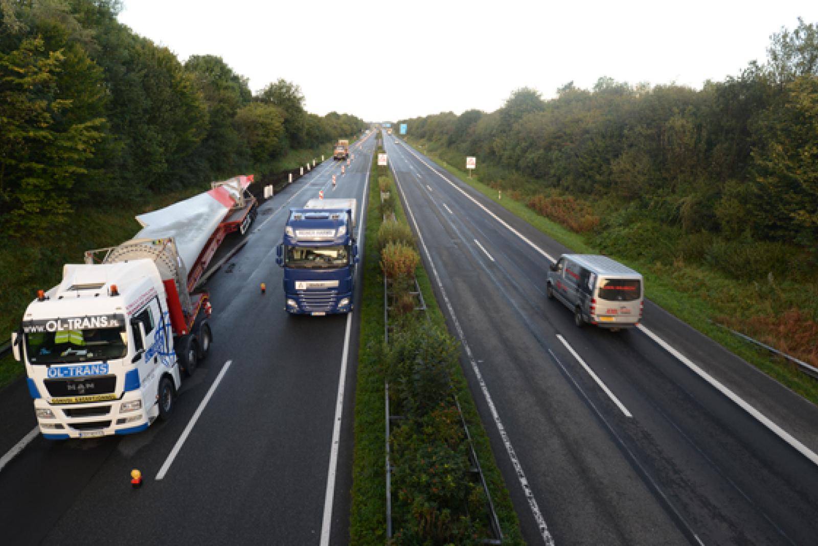 Ein Schwertransporter mit einem Windrad-Rotorblatt ist am Donnerstagabend auf der A 28 bei Leer verunglückt. Ab 13.15 Uhr wurde die Autobahn 28 für die Bergung des Transporters voll gesperrt. Diese Sperrung wurde gegen 17.30 Uhr aufgehoben.