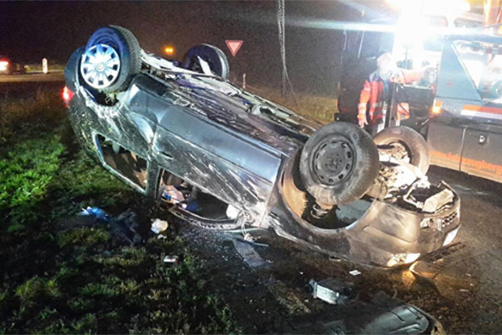 Auto überschlägt sich auf Autobahn