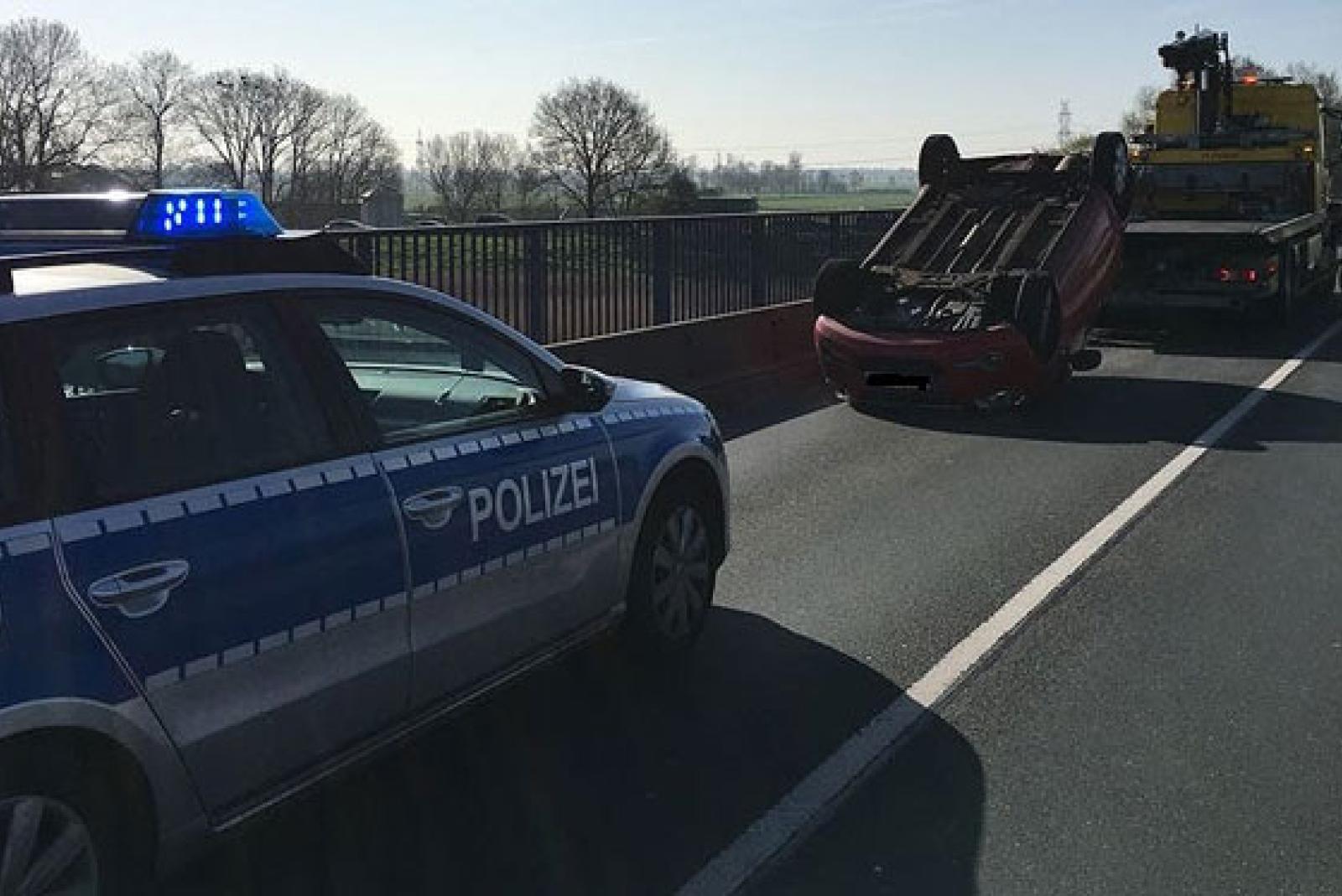 Bei einem Verkehrsunfall auf der Ledabrücke im Zuge der Papenburger Straße (B 70) in Leer hat sich heute ein Auto überschlagen. Es blieb auf dem Dach liegen. Der 75-jährige Fahrer aus Bad Zwischenahn erlitt leichte Verletzungen.