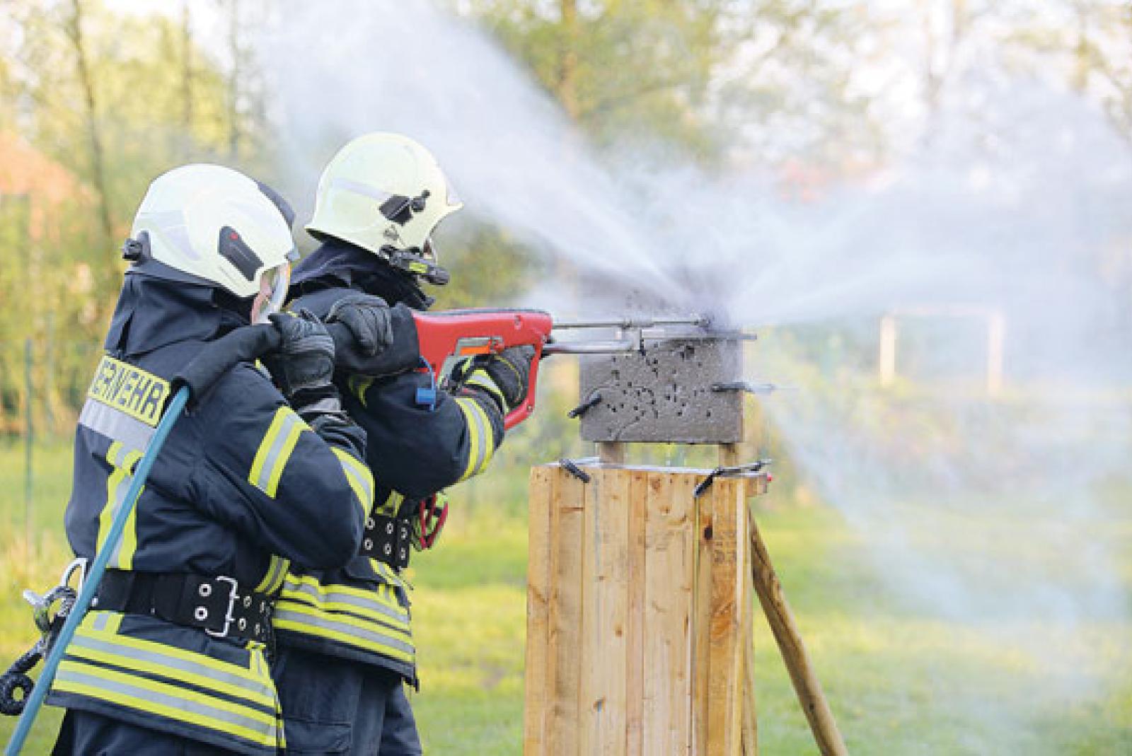 Mit Hochdruck durch die Wand und den Flammen den Garaus machen - diese Möglichkeit bietet eine neue Löschtechnik, die jetzt bei der Feuerwehr Loga zum Einsatz kommt und als richtungsweisend gilt.