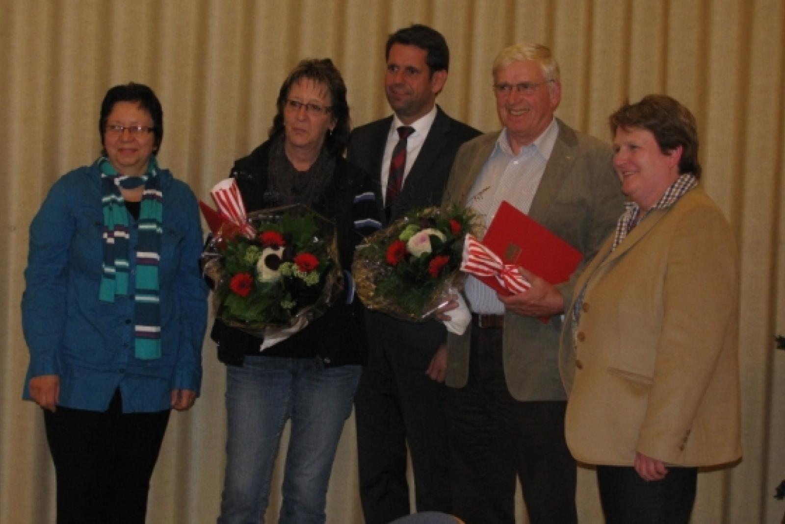 Verdiente Genossen wurden auf der Versammlung geehrt: (von links) Karin Mertens (Vorsitzende des Ortsvereins Bunde), Karla Koenen (zehn Jahre SPD-Mitglied), der stellvertretende SPD Landesvorsitzende Olaf Lies, Dieter Kuper (40 Jahre SPD- Mitglied) und die Landtagsabgeordnete Johanne Modder.  © SPD
