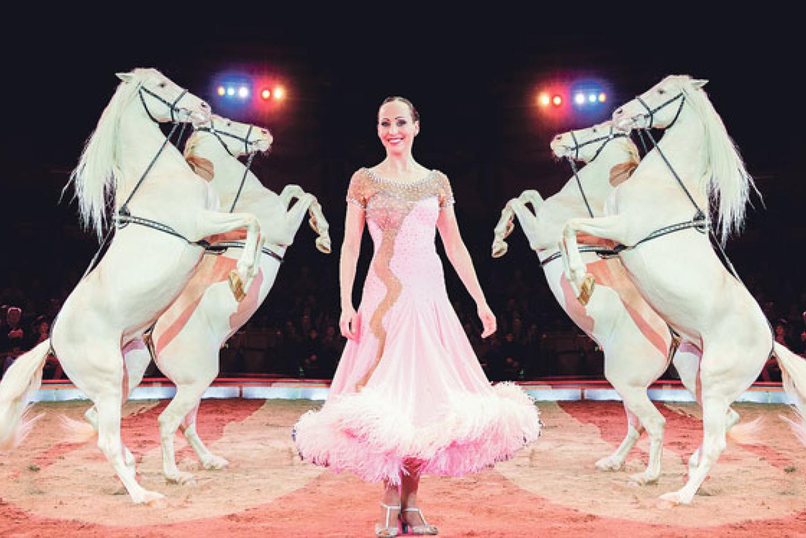 Bis Mitte November präsentiert der Circus Krone, der nach Unternehmensangaben größte Zirkus der Welt, seine neue Sommer-Produktion mit dem Titel »Evolution«. Mit dabei sind 54 Artisten aus zwölf Nationen, im Bild Jana Mandana Lacey-Krone mit ihren Pferden. 30 Stä...