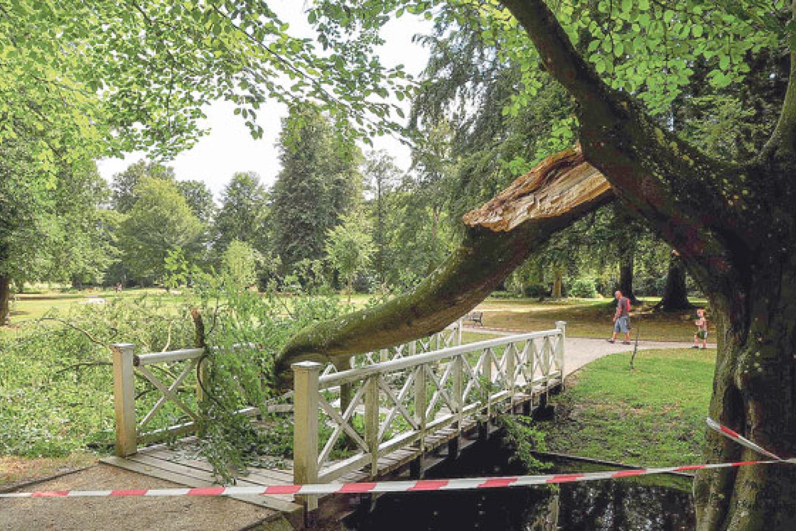 Im Schlosspark der Evenburg in Leer ist am Vormittag des 31. Juli ein weit ausragender Ast einer großen Rotbuche abgebrochen und auf eine Brücke gefallen. Als Grund für den Bruch führten die Gärtner des Schlosses die ...