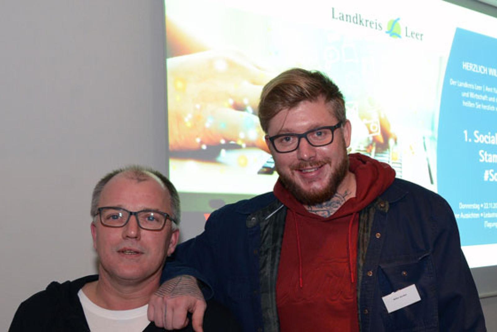 Rund 70 ostfriesische Social Media Experten und die, die es gerne werden möchten, trafen sich im Tagungsraum Hafenblick des Cafés »Schöne Aussichten« zu einem lockeren und ungezwungenen Austausch bei dem »Brücken gebaut und Social Media Fachwissen businesstauglich gemacht wird«, so Sebastian Neumann. Ein Highlight des Abends war der Impulsvortrag »Vom Imbissbuden Poet zum Influencer« von den Ostfriesen Wilke Zierden und Udo Tesch. Zierden gab einen Einblick, wie er es vom Dorfjungen zum Instagram Wunderkind geschafft hat und zusammen mit Udo Tesch, dem Platzwart des SuS Steenfelde, die sozialen Netzwerke erobert.