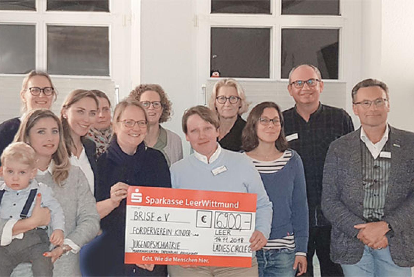 Über 6900 Euro konnten sich die Mitarbeiter der Kinder- und Jugendpsychiatrie und -psychotherapie (KJPP) sowie die Mitglieder des Fördervereins Brise jetzt freuen. Die Spende überbrachten kürzlich die Frauen vom »Ladies Circle Emden-Leer«.