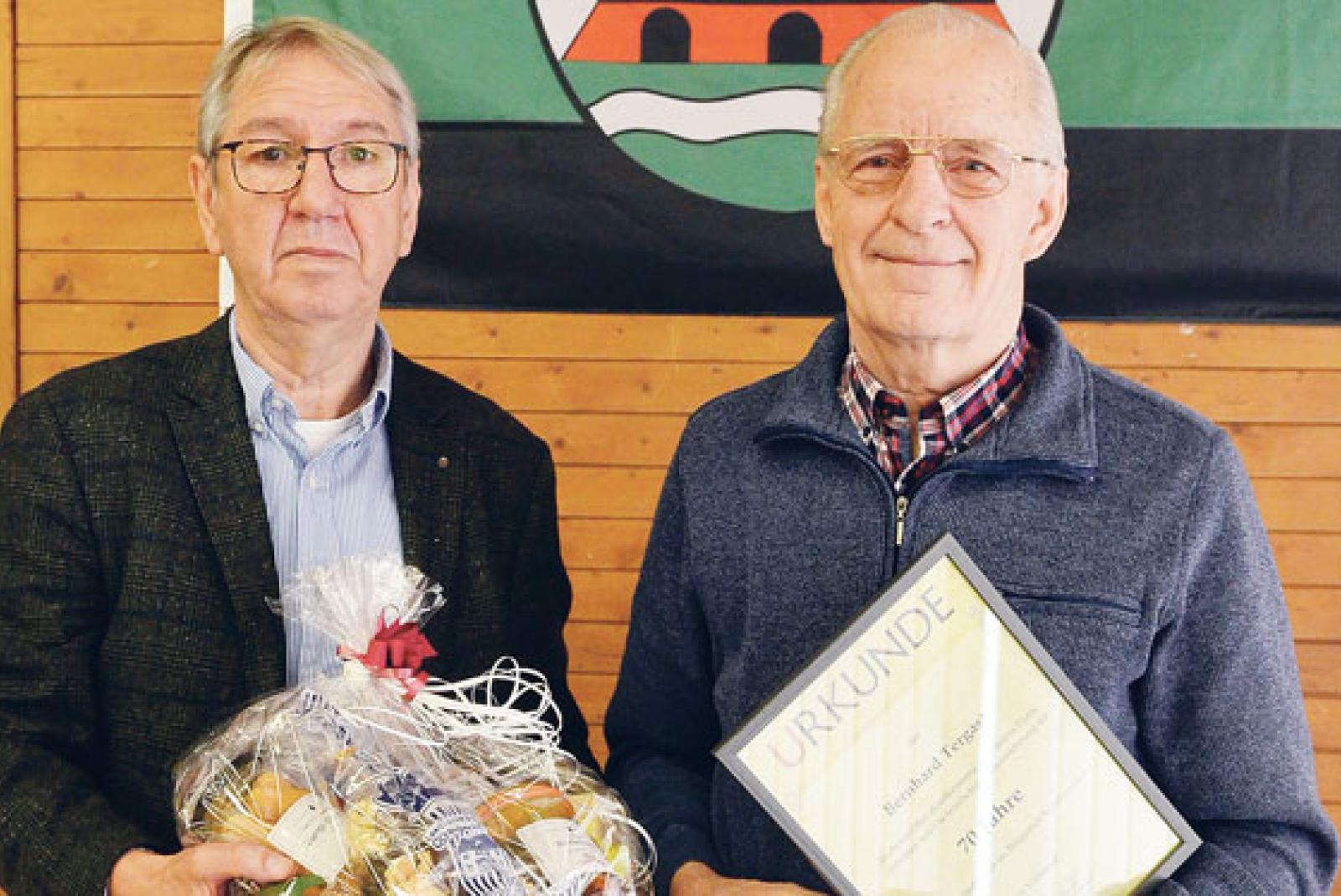 Der Bingumer Sportverein feierte am Sonntag mit seinen ehrenamtlichen Mitgliedern 70 Jahre Vereinsleben. Bernhard Tergast und Günther Stief wurden für ihre 70-jährige Vereinstreue geehrt.