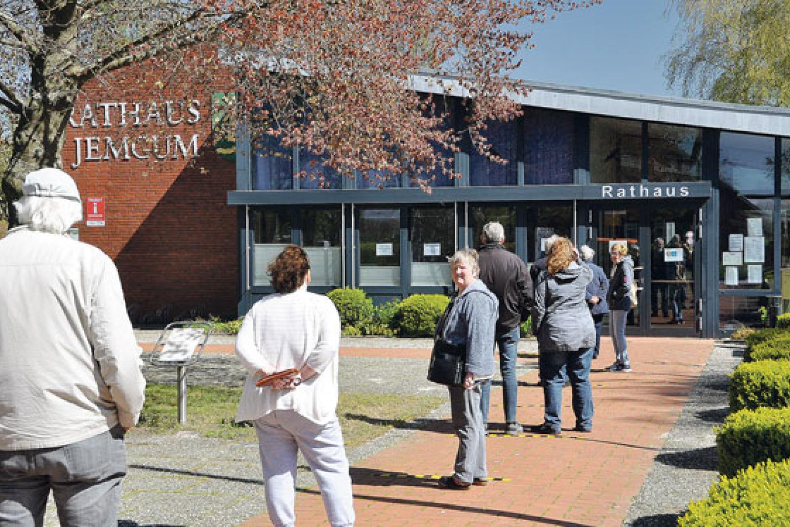 Die Sonderschichten von »Heidi´s Nähstube« haben sich gelohnt: Beim Verkauf der Corona-Alltagsmasken bildete sich gestern eine Schlange vor dem Jemgumer Rathaus. Ab 14 Uhr wurden aus dem Fenster des Bürgerbüros von Martje Broers die Masken verkauft. Wartende ...