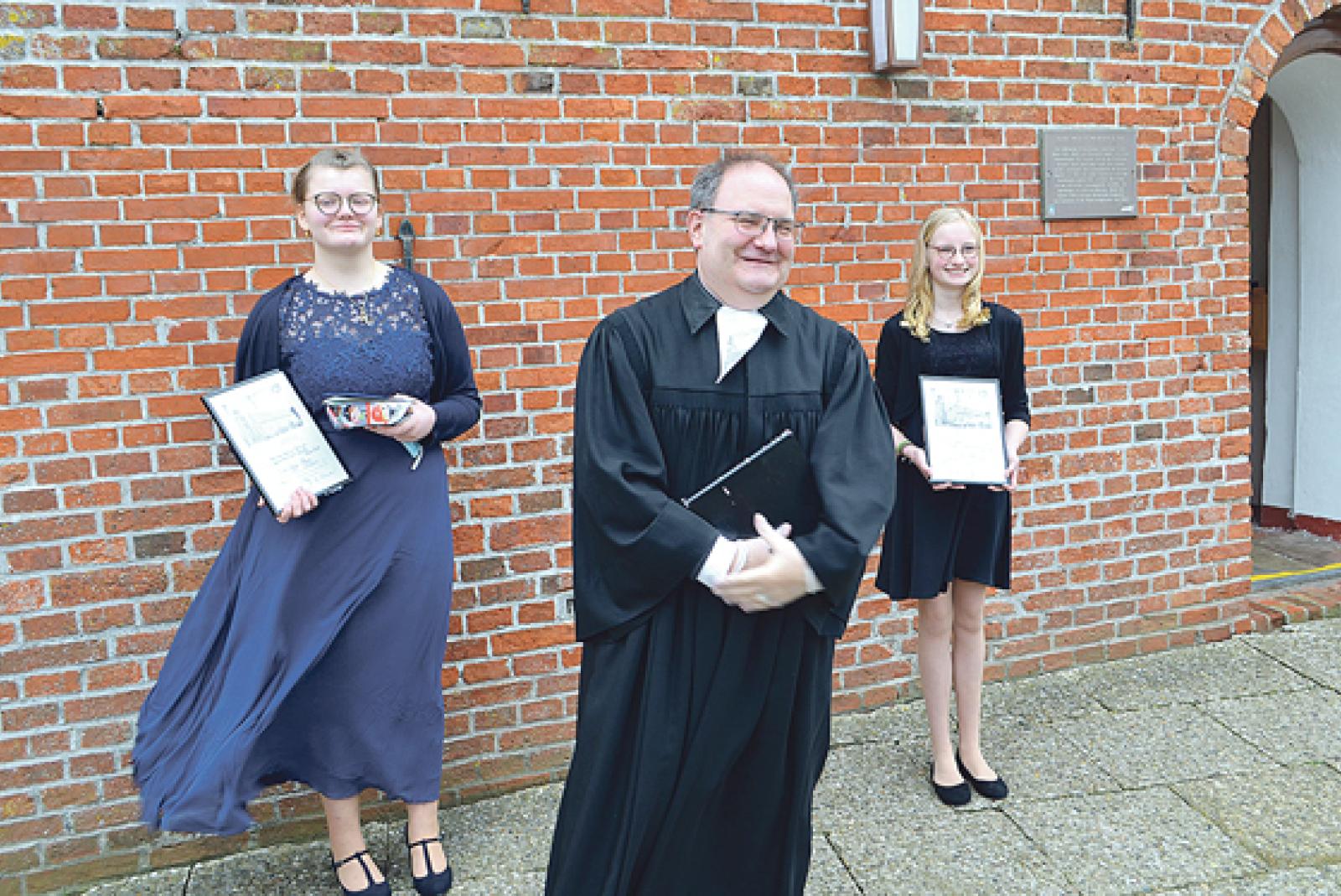 Am 28. März fand in Ditzum eine erste Konfirmation in der reformierten Kirche statt. Jantje Kruse (links) und Femke Duin (rechts) bekundeten ihre Bereitschaft, zur Gemeinde zu gehören. Pastor Martin Schneider (Mitte) hielt die Predigt zu Johannes 10, Vers 9: »Ich ...