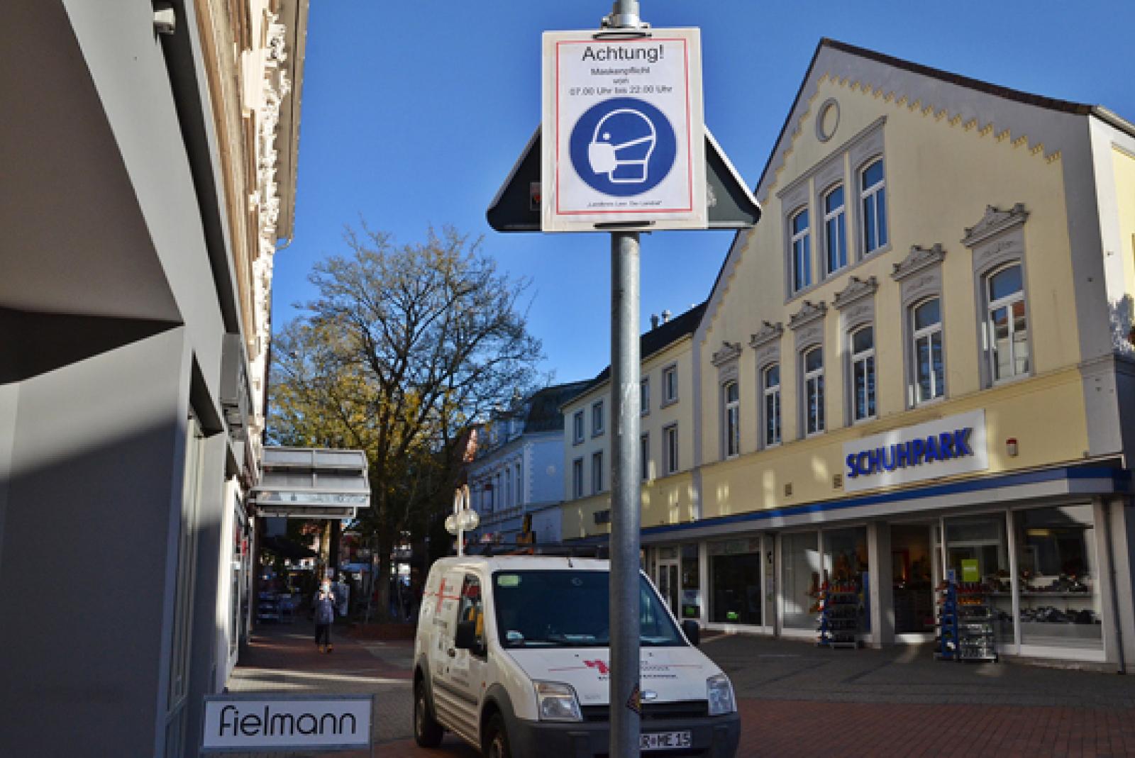 Die Maskenpflicht zum Schutz vor Corona-Infektionen in der Innenstadt von Leer wird ab Pfingstsonntag gelockert. Das kündigt der Landkreis in einer Pressemitteilung an.