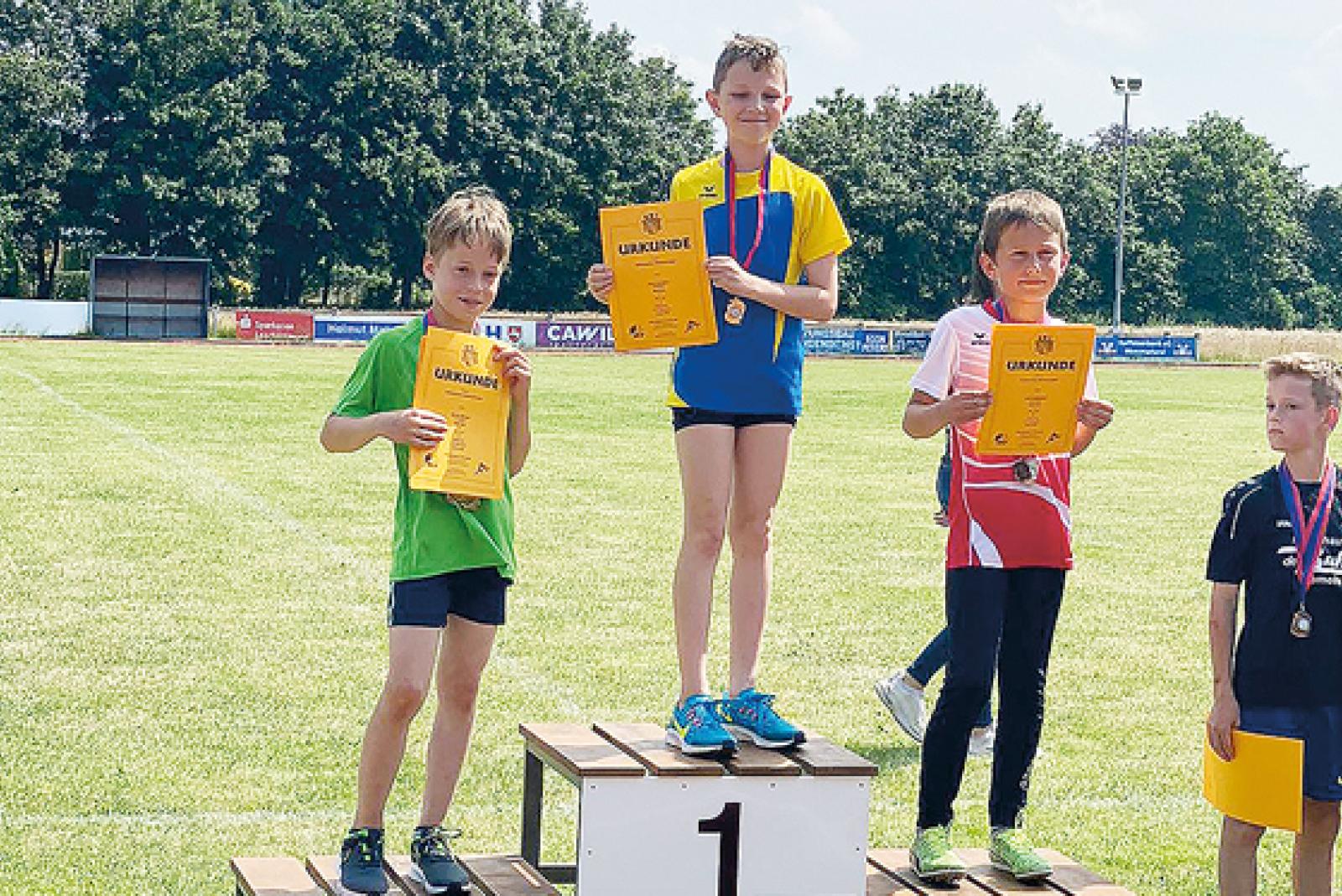 Junge Leichtathleten der Altersklasse U12 des TuS Weener konnten sich jetzt bei den Ostfriesland Meisterschaften in Warsingsfehn auszeichnen. Henri Janssen verpasste dabei den Ostfrieslandrekord im 800-Meter-Lauf nur knapp.