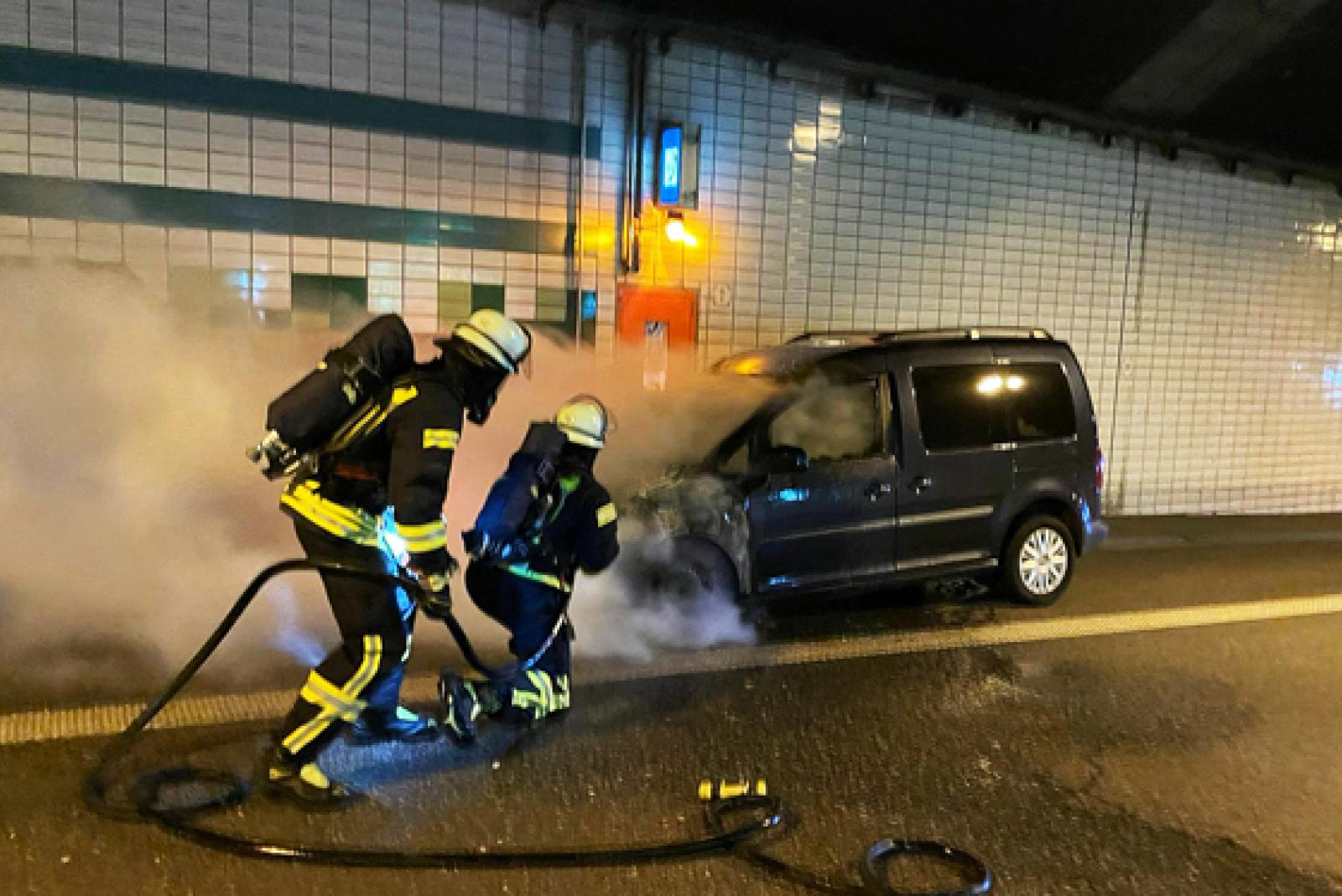Brennendes Auto im Emstunnel