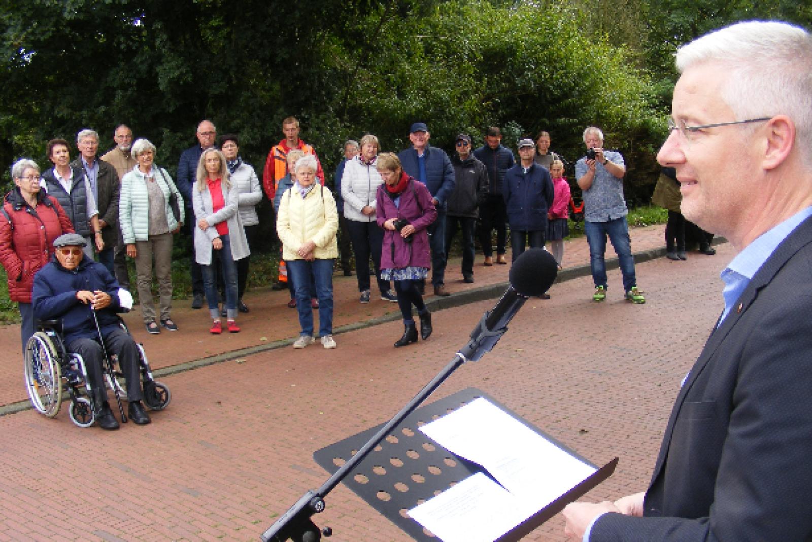 Matthias Groote zitierte ein slawisches Sprichwort, um die Bedeutung von Erinnerungsorten klar zu machen. »Es sind die Lebenden, die den Toten die Augen schließen«, sagte der Leeraner Landrat bei der Enthüllung des Gedenksteins für jüdische Jemgumer. »...