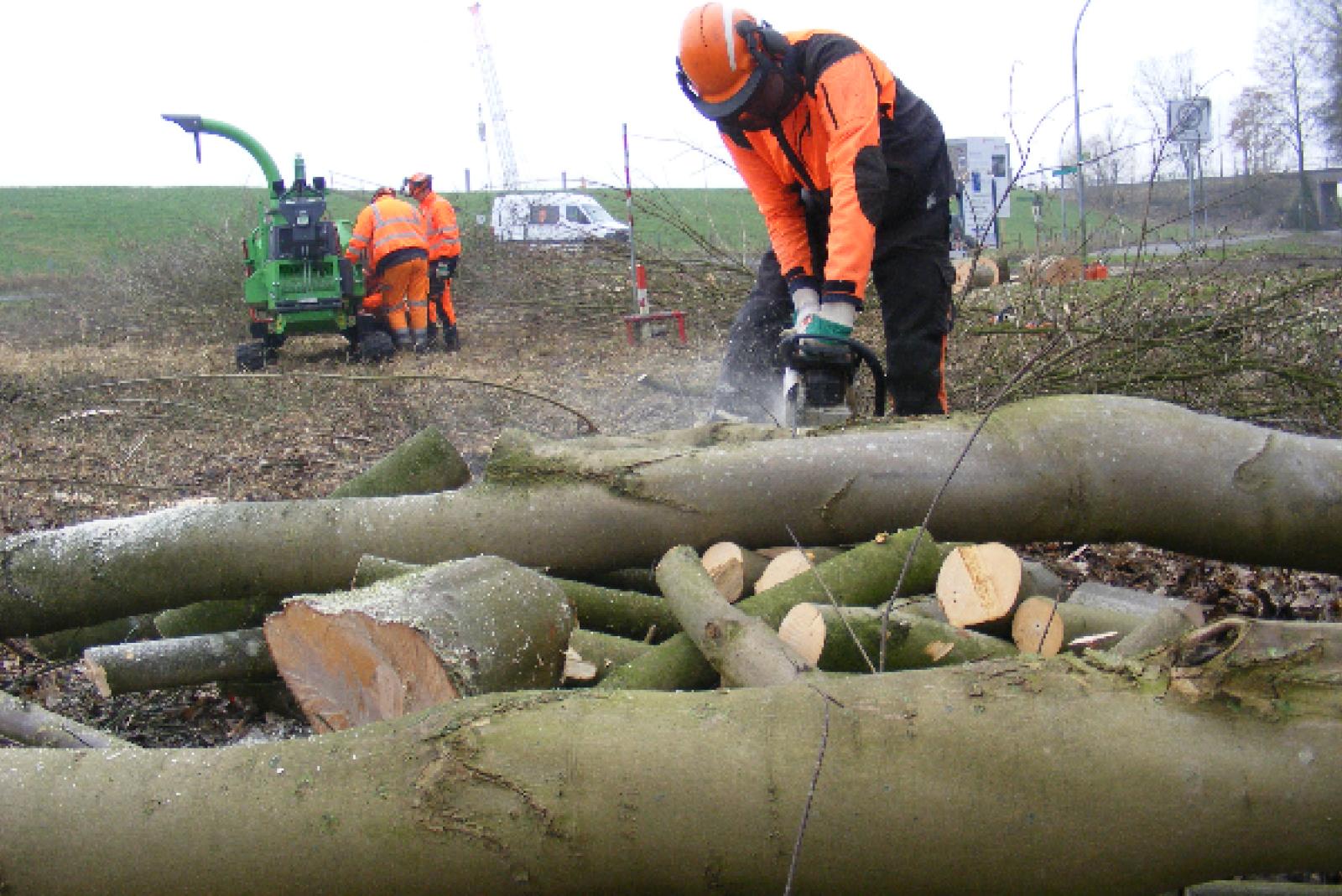 Ein Team der Deutschen Bahn lässt in Sichtweite der Friesenbrücke in Weener die Motorsäge kreisen: Auf einem freien Grundstück an der Ecke Friesenstraße/Schleusenweg werden noch bis einschließlich heute Bäume und Sträucher ...