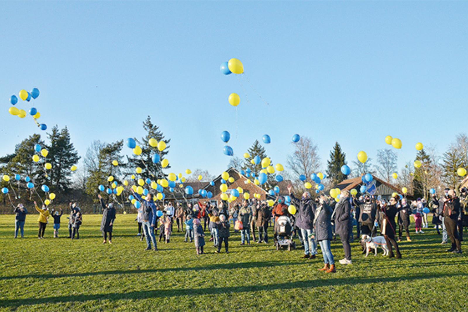 Als Zeichen der Solidarität mit der Ukraine: 200 mit Helium gefüllte, gelbe und blaue Ballons trugen am Donnerstagnachmittag auf dem Sportplatz von Borussia Leer am Bahndamm 33 die Wünsche und Hoffnungen von Kindern, Jugendlichen und Erwachsenen jeden Alters in ...