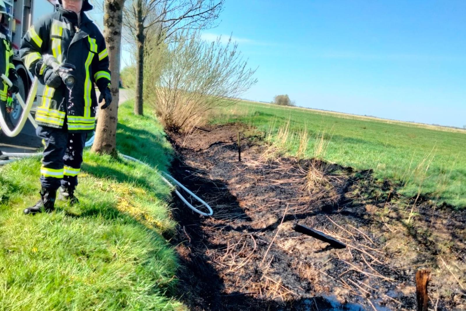 Zu einem Flächenbrand wurde am Donnerstagvormittag die Feuerwehr Jemgum alarmiert. Am Sieltiefsweg in Midlum standen laut Mitteilung etwa 100 Quadratmeter Böschung in Flammen. Die Feuerwehr rückte umgehend aus und löschte den Brand.