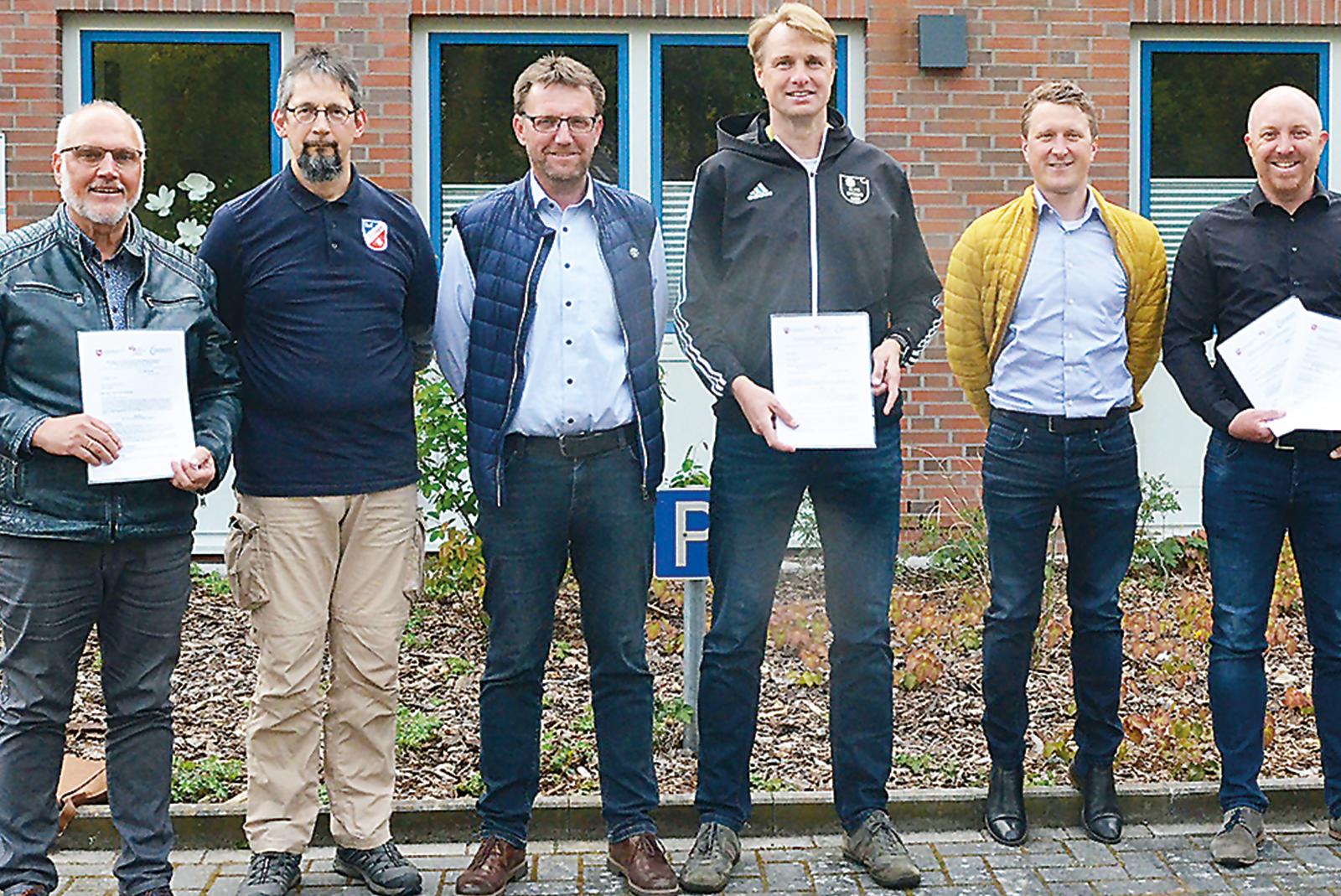 Der stellvertretende Vorsitzende für Sportstätten und Umwelt, Jens Watermülder, überreichte am Donnerstagabend in der Geschäftsstelle des Kreissportbundes Leer gemeinsam mit seinem Vorsitzenden Jörg Kromminga 13 Bewilligungsbescheide über die Sportstättenbaumaßnahmen für das Jahr 2022.