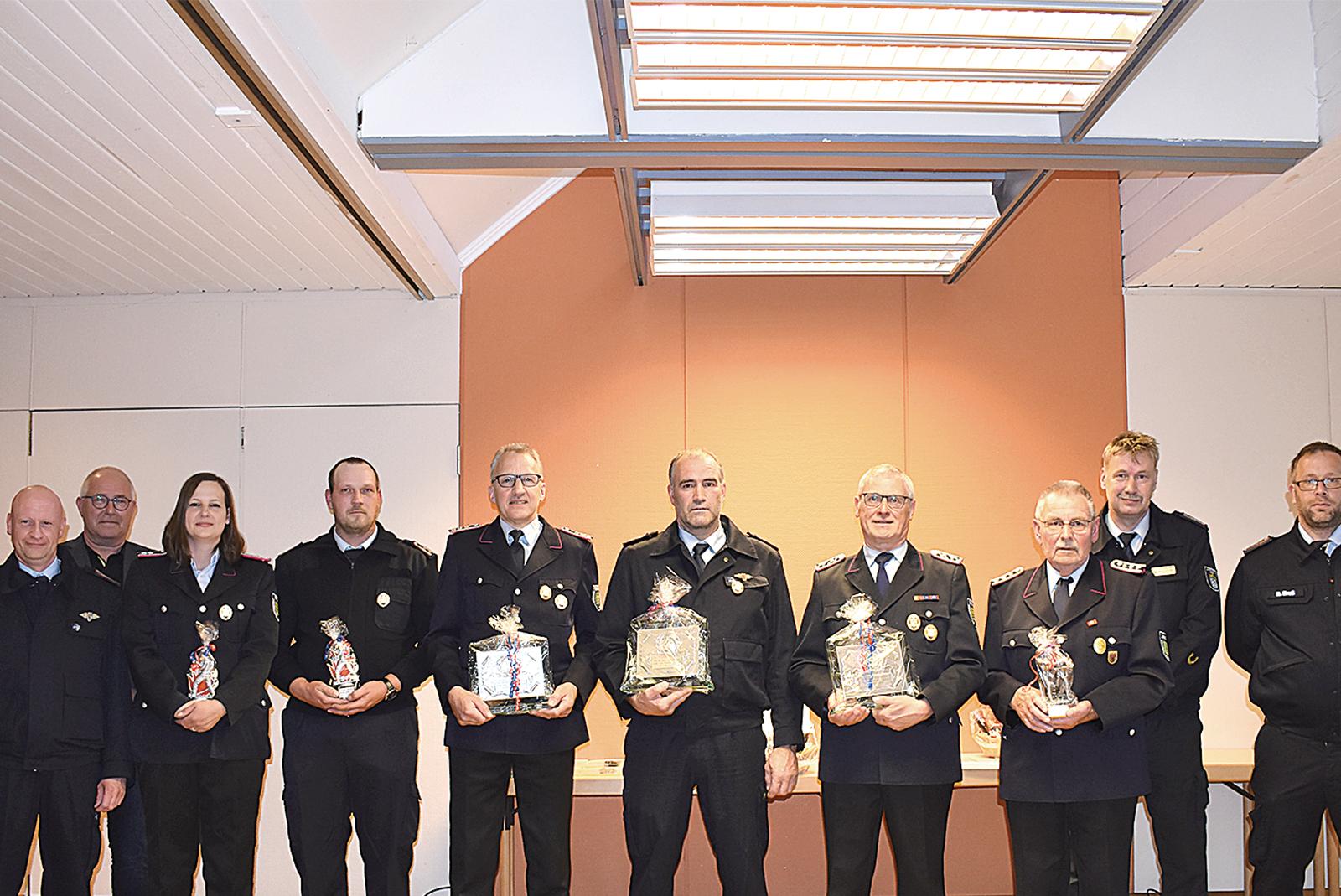 Bei der Jahreshauptversammlung der Freiwilligen Feuerwehr Jemgum wurden mehrere Mitglieder ausgezeichnet