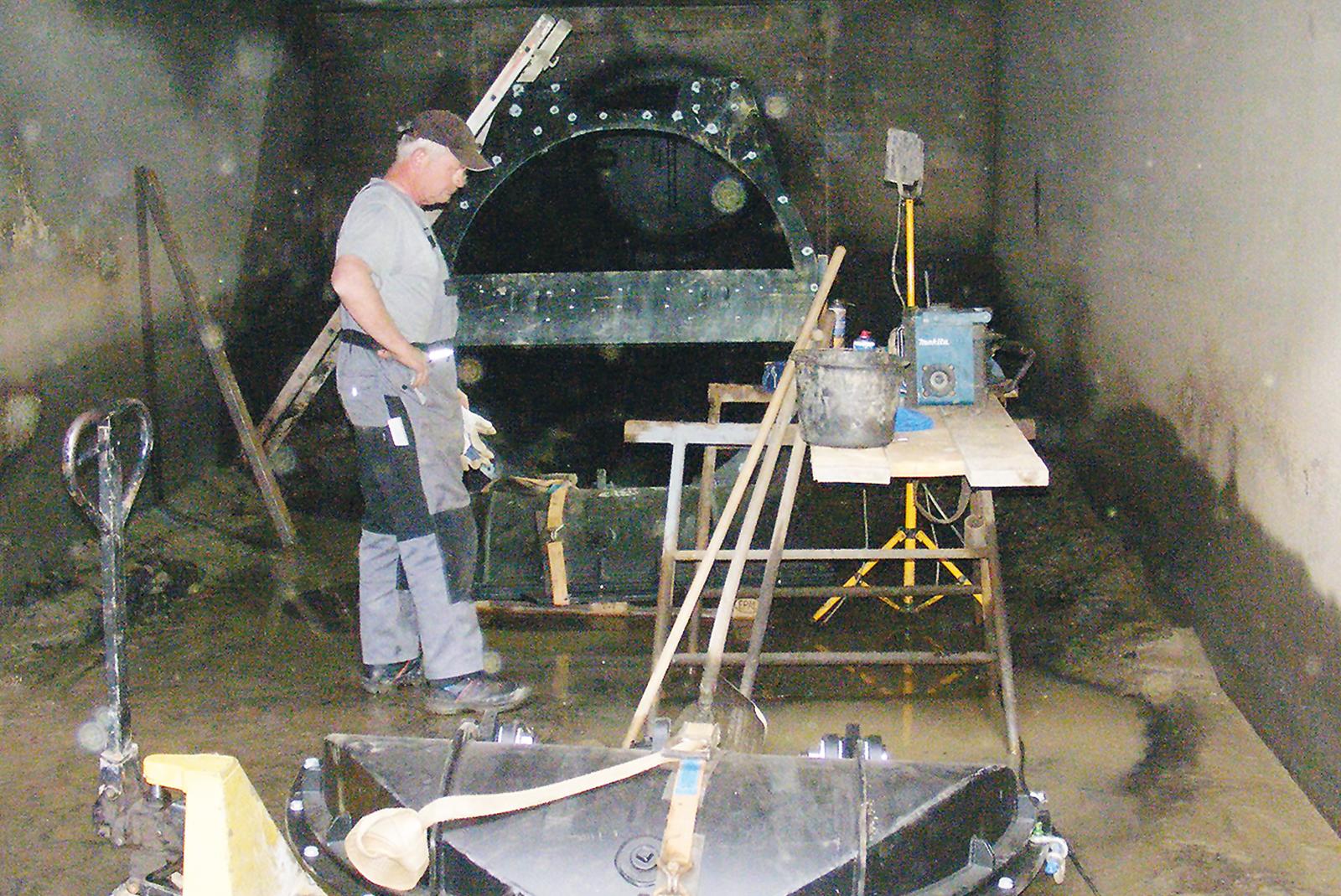 Im Schöpfwerk in Soltborg finden zurzeit Arbeiten in einem Bereich statt, der sonst rund um die Uhr unter Wasser steht. Die Auslaufrohre erhalten neue Klappen, die sich bei der Entwässerung des Sieltiefs in die Ems öffnen und danach ...