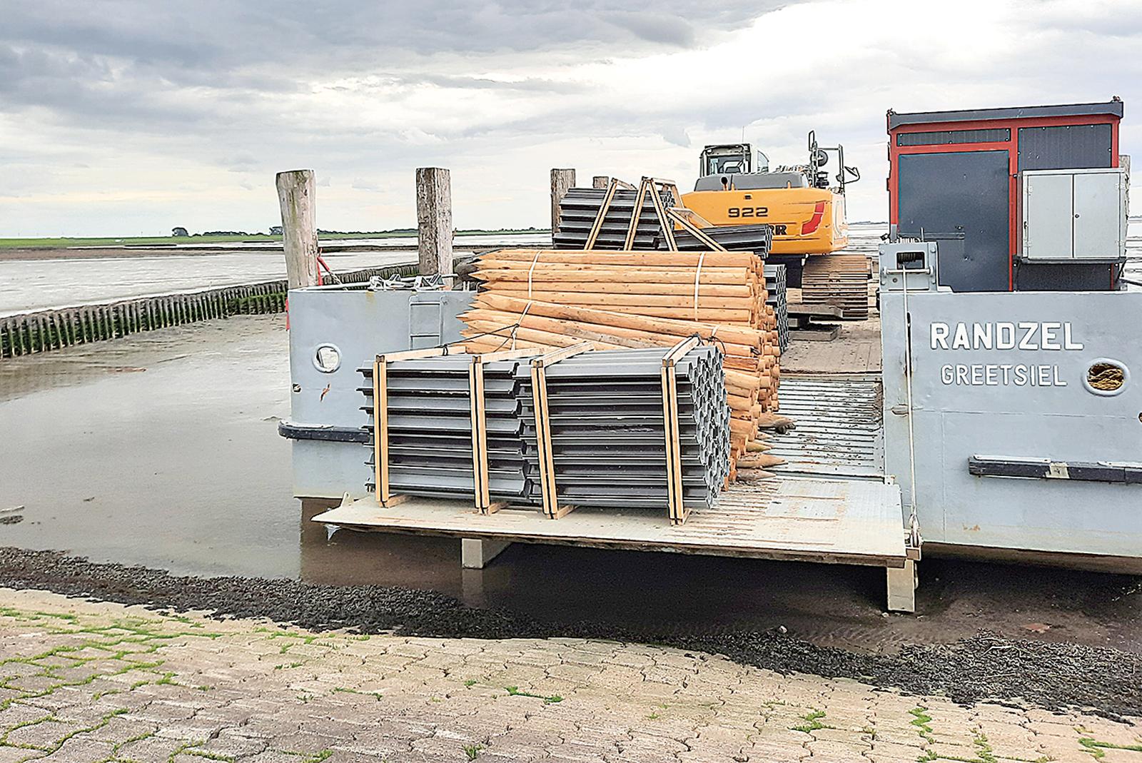 Mit seinem Pontonboot »Randzel« führt der Niedersächsische Landesbetrieb für Wasserwirtschaft, Küsten- und Naturschutz (NLWKN) zurzeit Lahnungsarbeiten im Dollart vor der Bohrinsel in Dyksterhusen aus. Lahnungen dienen dem Uferschutz. Sie bestehen ...