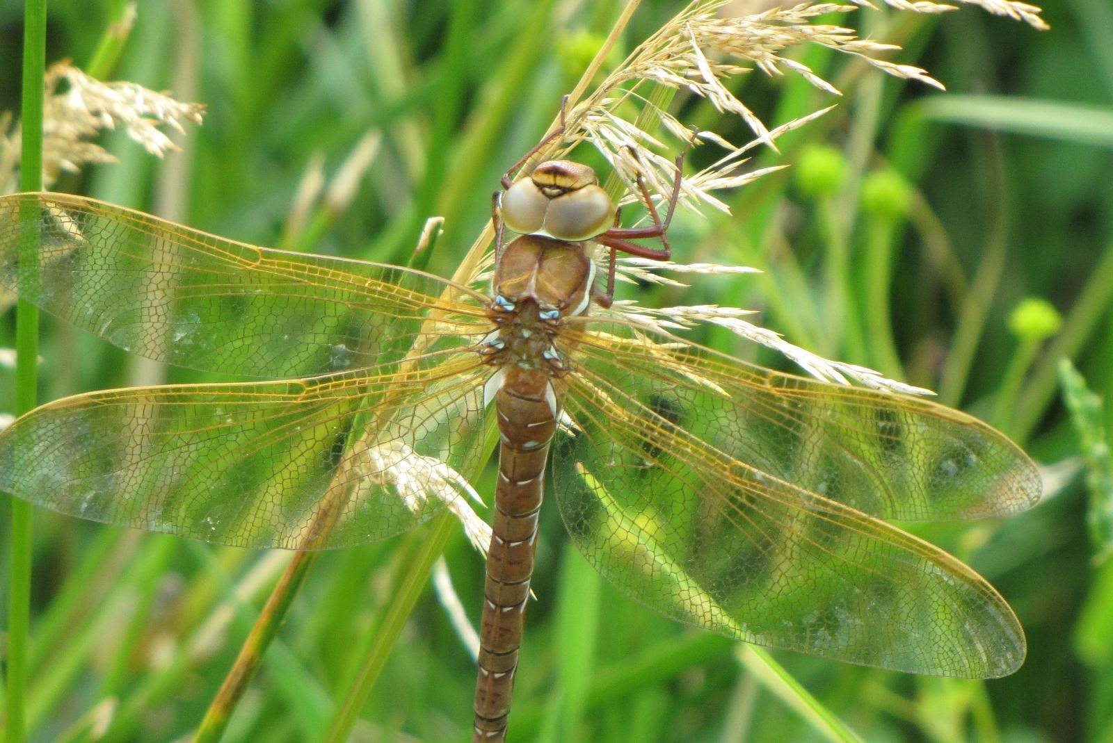 Die Braune Mosaikjungfer (Aeshna grandis) zählt zu einer der häufigsten Edellibellen (Aeshnidae) im Gebiet. Besonders am Erlensee, entlang des Dwarstiefs und im Bereich Marienchorster Meer entwickelt sie große Bestände. Sie ist die ...
