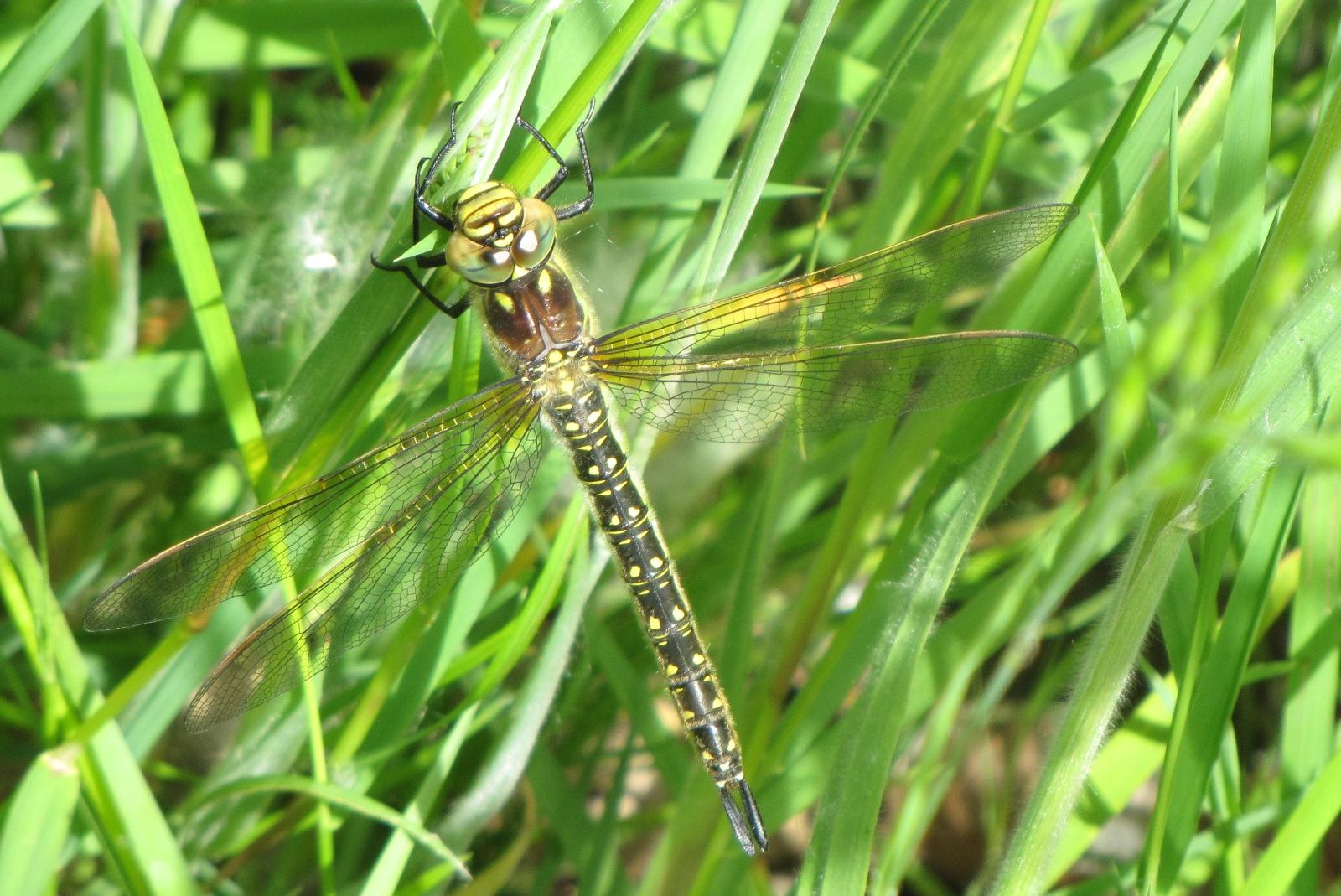 Der Frühe Schilfjäger (Brachytron pratense), auch »Kleine Mosaikjungfer« genannt, gehört zu den Großlibellen (Anisoptera) und zur Familie der Edellibellen (Aeshnide). Mit einer Gesamtlänge von 55 bis 65 Millimetern ist sie ...