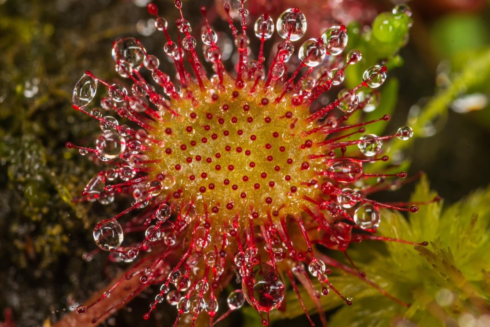 Der Rundblättrige Sonnentau (Drosera rotundifolia) kommt mittlerweile nur noch in Schutzgebieten, zum Beispiel »Hochmoor Wymeer« und »Püttenbollen«, vor. D. rotundifolia zählt zu den »fleischfressenden« Pflanzenarten. Kleininsekten bleiben an ...