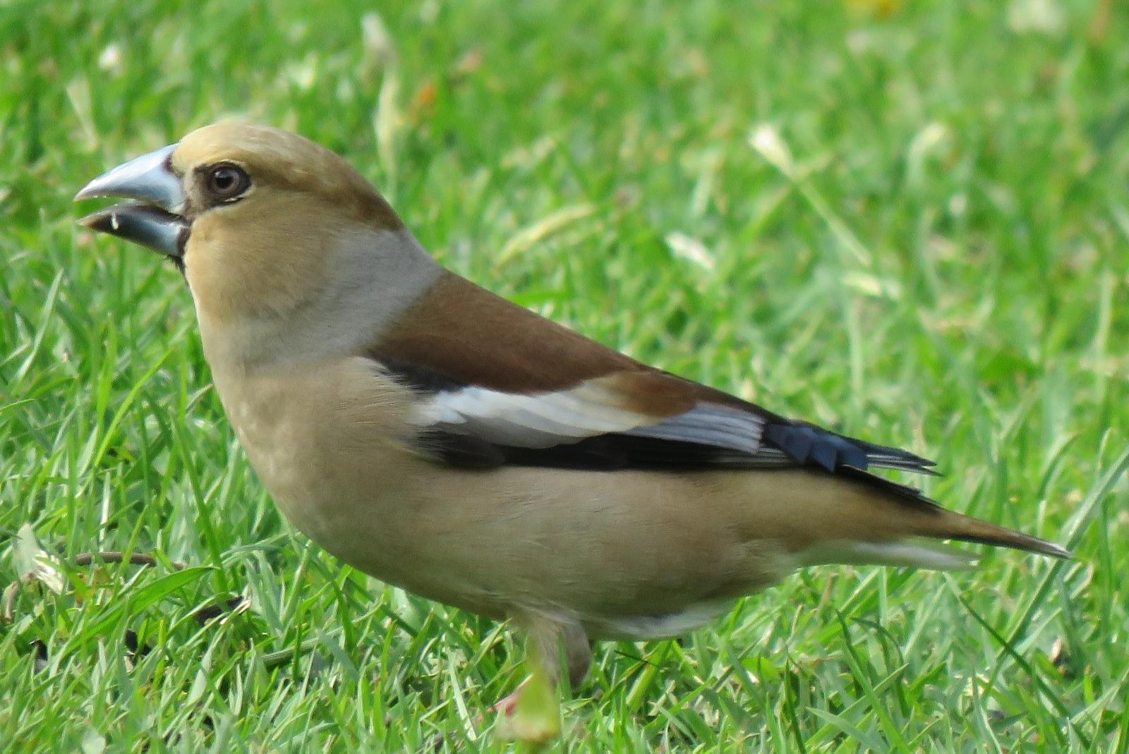 Der Kernbeißer (Coccothraustes coccothraustes) ist mit 18 Zentimetern der größte Vertreter der Finkenfamilie. Er ist unverkennbar mit dem ungewöhnlich dicken, graublauen Schnabel, mit dem er allerlei Steinfrüchte, selbst Kirsch- und Pflaumenkerne, knacken ...