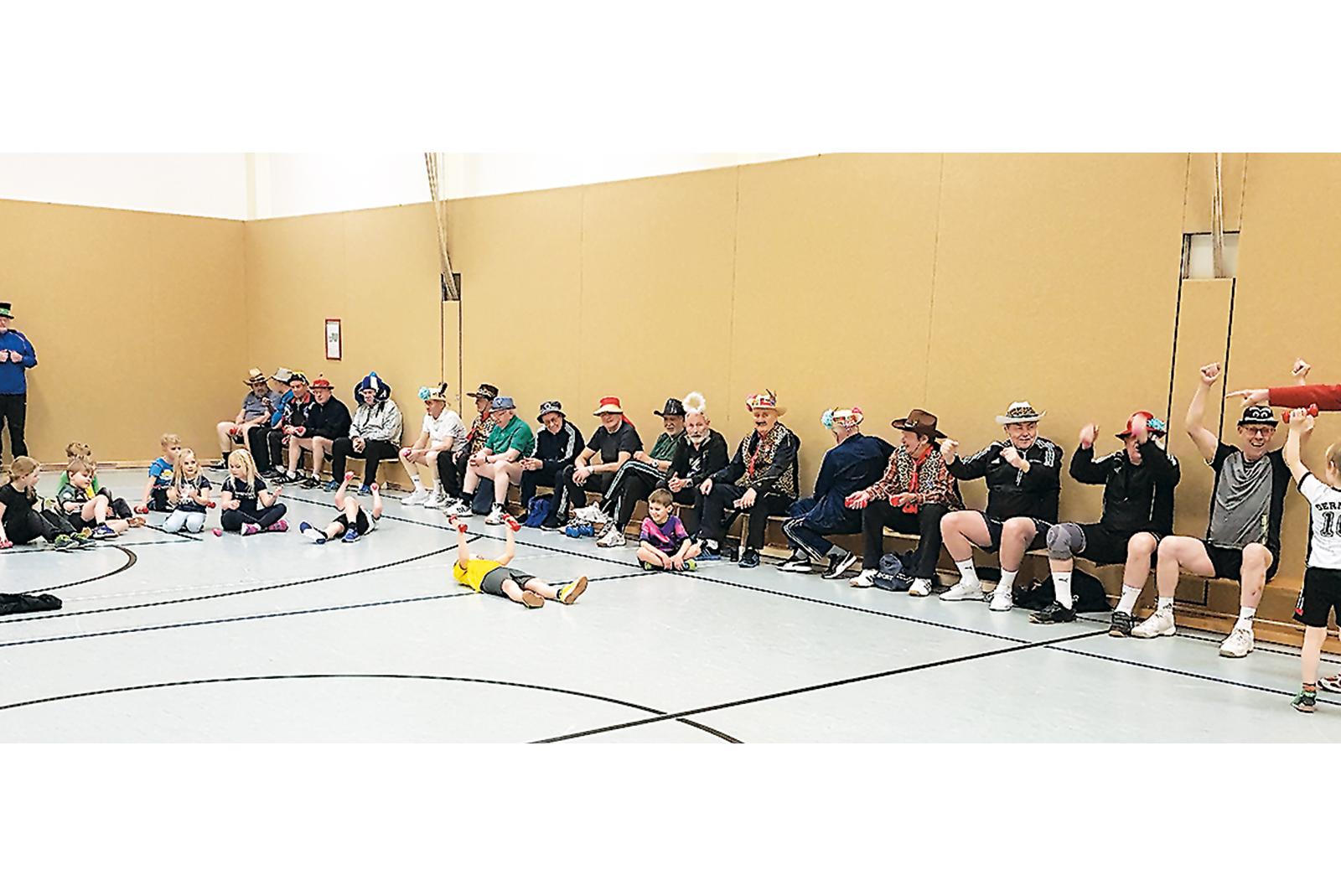 Ein Bild mit Seltenheitscharakter: Zwischen den Teilnehmern einer Sportstunde der Stapelmoorer Senioren betrug der Altersunterschied teilweise zwischen 70 und 80 Jahren. Die Mitglieder der Männer-Fitness-Gruppe, kostümiert mit Karnevalshütchen, mussten sich zu Beginn der Turnstunde etwas in Geduld fassen, denn ...