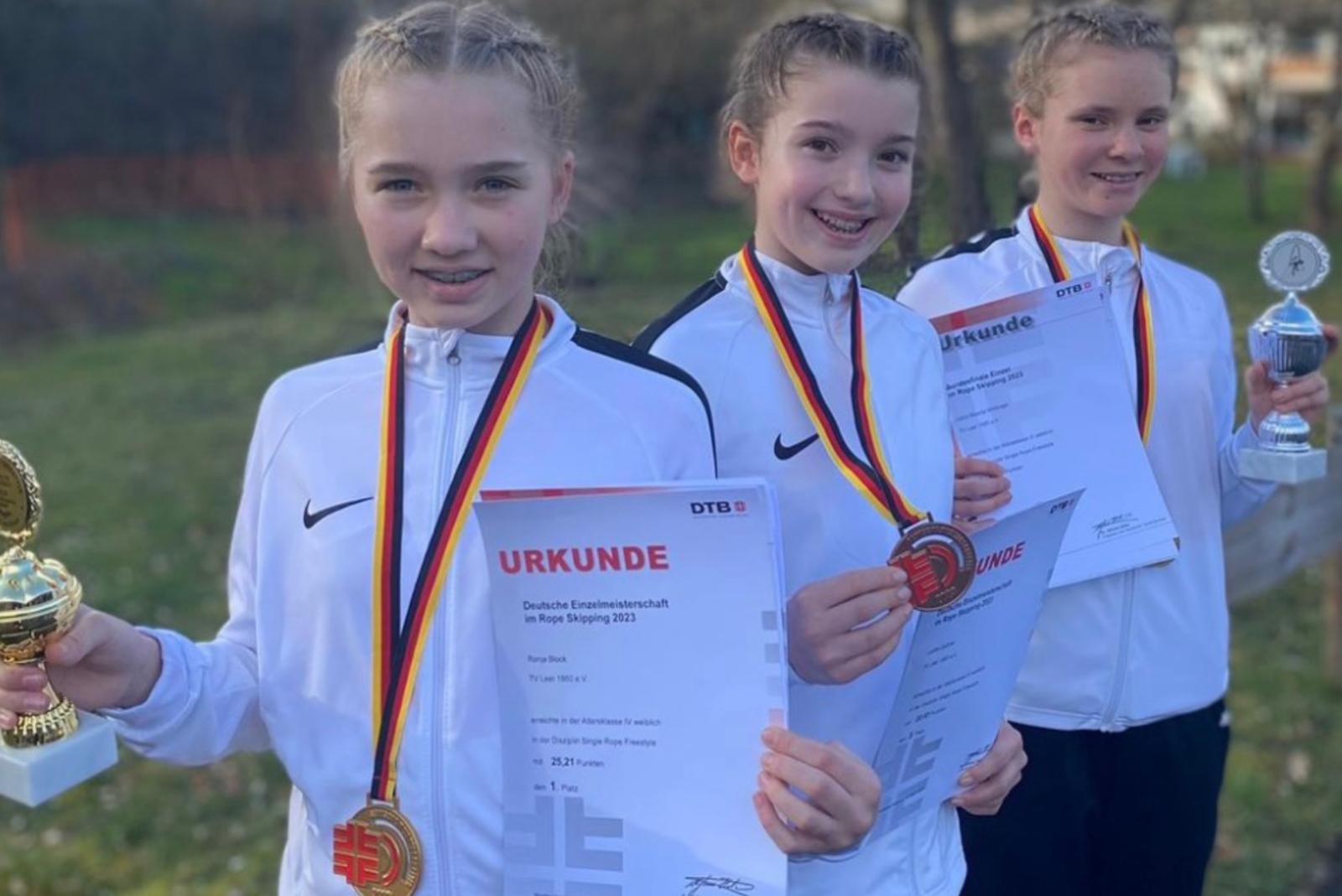 Vier Springerinnen des TV Leer haben am vergangenen Wochenende tolle Erfolge bei den Deutschen Einzelmeisterschaften im Rope Skipping (Seilspringen) in Idar-Oberstein erzielt. Eine von ihnen wurde sogar Deutsche Freestyle-Meisterin.