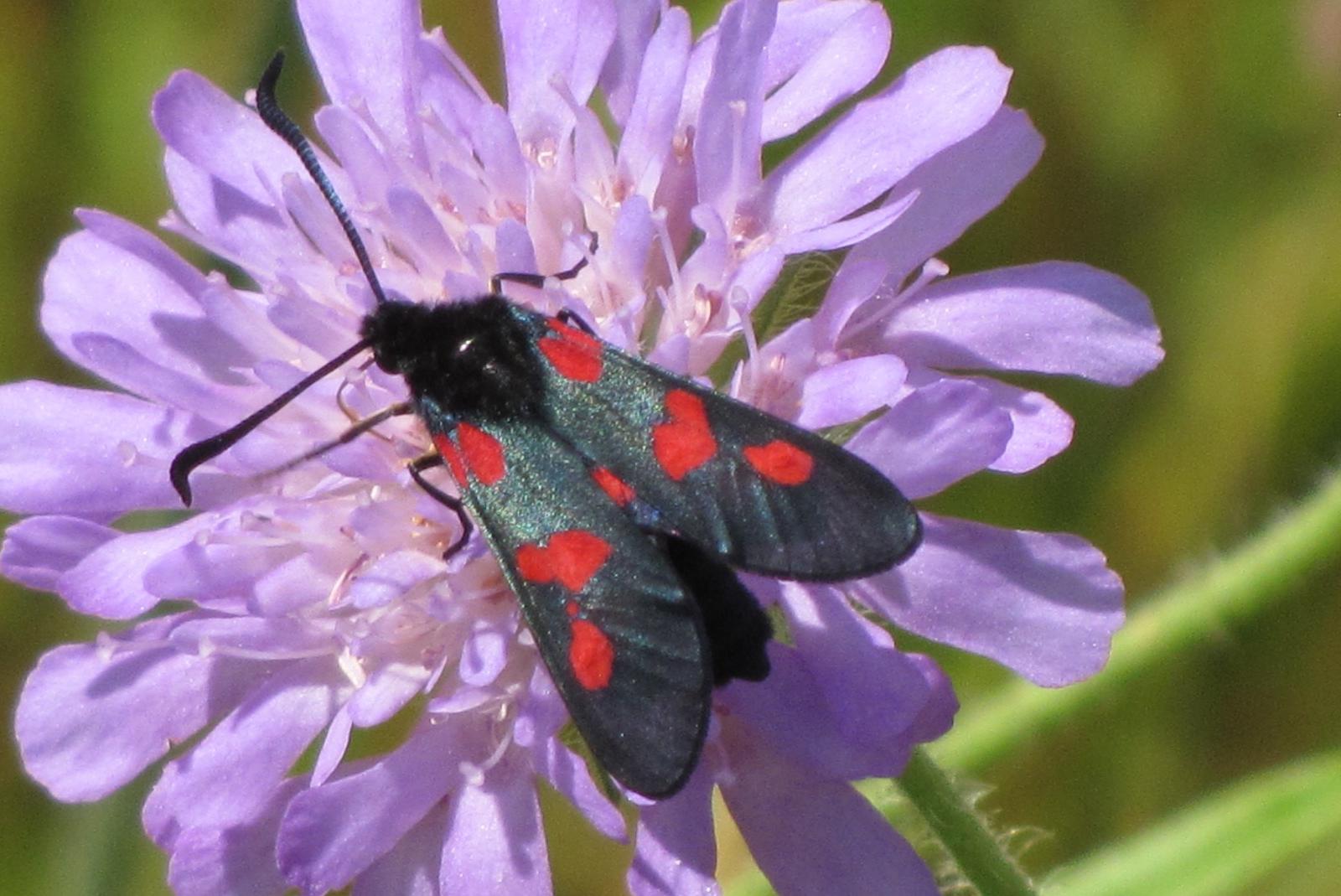 auch Sechsfleck oder Erdeichel-Widderchen genannt