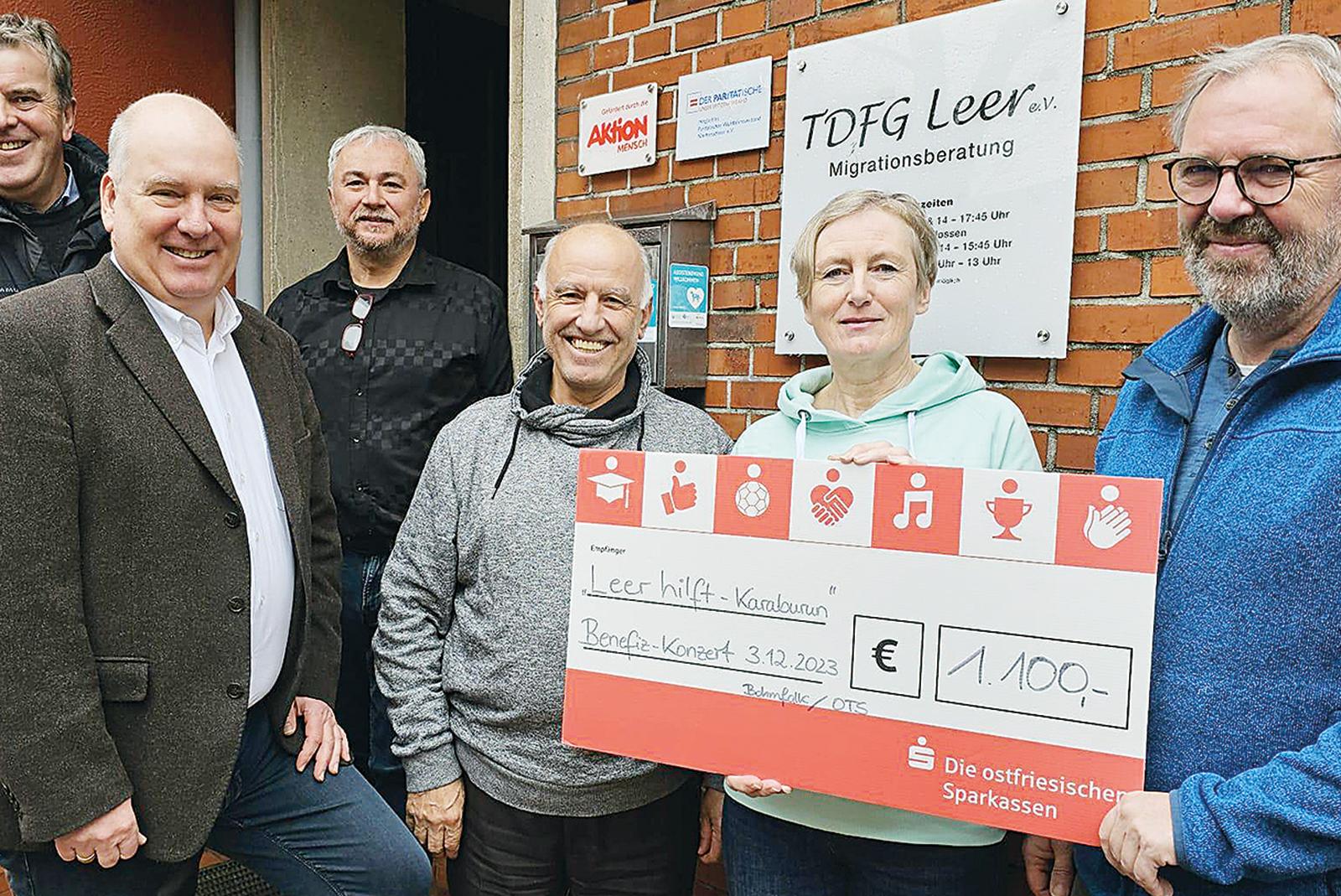 Ein Benefizkonzert im Kulturspeicher in Leer hat einen Spendenbetrag in Höhe von 1100 Euro für ein Kinderprojekt im Erdbebengebiet Karakocan in der Türkei eingebracht. Organisiert hatte das Konzert mit der Folkgruppe »Kelpie« der Ostfriesische Turn- und Sportförderverein (...