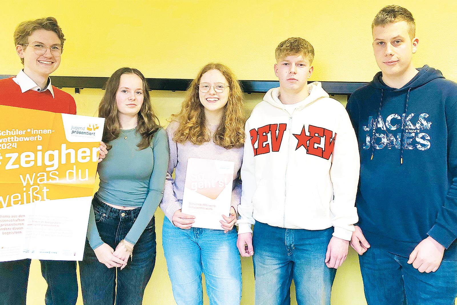 Yury Bykovskiy, Britta Cordes, Julian Peters und Kea Zimmer aus dem 12. Jahrgang des Teletta-Groß-Gymnasium (TGG) überzeugten mit ihrer Präsentation zu einem naturwissenschaftlich-mathematischen Thema die »Jugend präsentiert«-Jury und schafften es so in eines von neun Länderfinals.