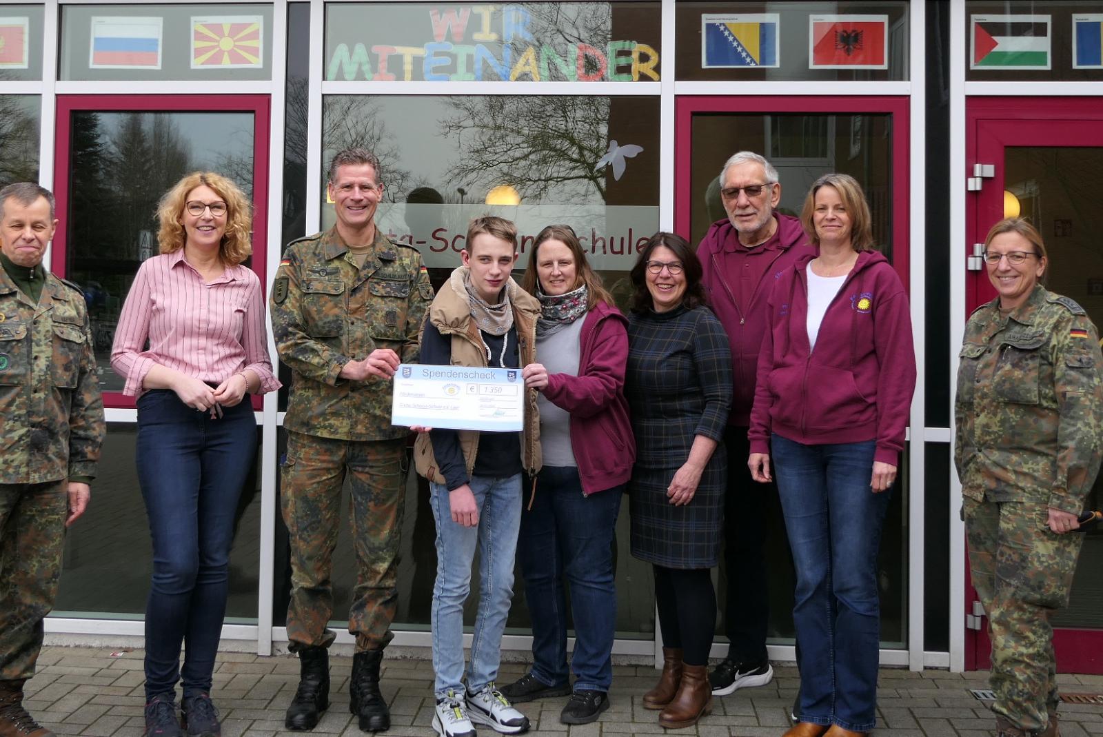 Ein symbolischer Scheck in Höhe von 1350 Euro wurde vom Kommandeur des Kommando Schnelle Einsatzkräfte Sanitätsdienst, Oberstarzt Dr. Kai-Siegfried Schlolaut, an den Förderverein der Greta-Schoon-Schule in Leer übergeben. Die Soldatinnen und Soldaten aus Leer konnten die Spende ...