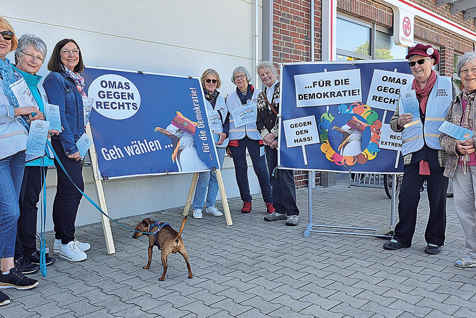 Aufrecht gegen Rechtsextremismus: Die Arbeitsgruppe Rheiderland der Kreisvereinigung »Omas gegen Rechts« hat am Samstag bei einer Aktion in Weener dazu aufgerufen, bei der Europawahl am 9. Juni nicht den Europafeinden das Feld zu überlassen.