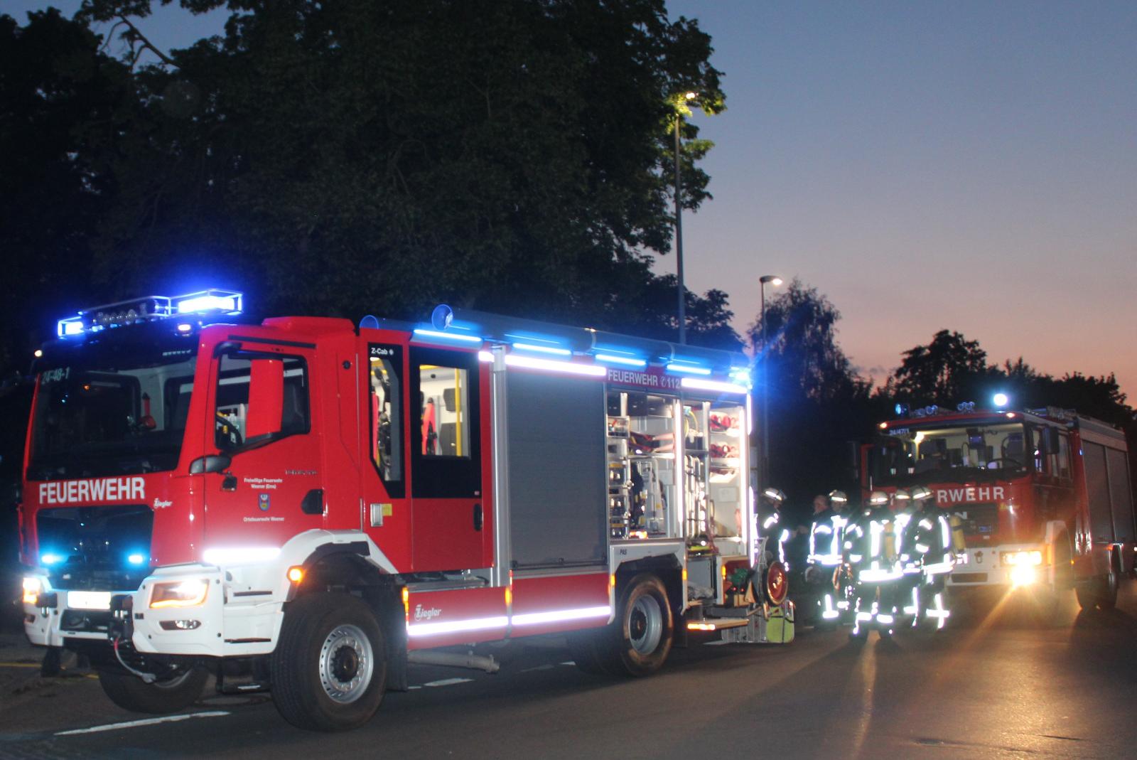 Ein weiteres Eingreifen der Feuerwehr war somit nicht erforderlich. Die Feuerwehr Weener war mit dem Hilfeleistungslöschgruppenfahrzeug HLF 20, dem Löschgruppenfahrzeug LF 16 und mehreren Einsatzkräften vor Ort sowie die Polizei.