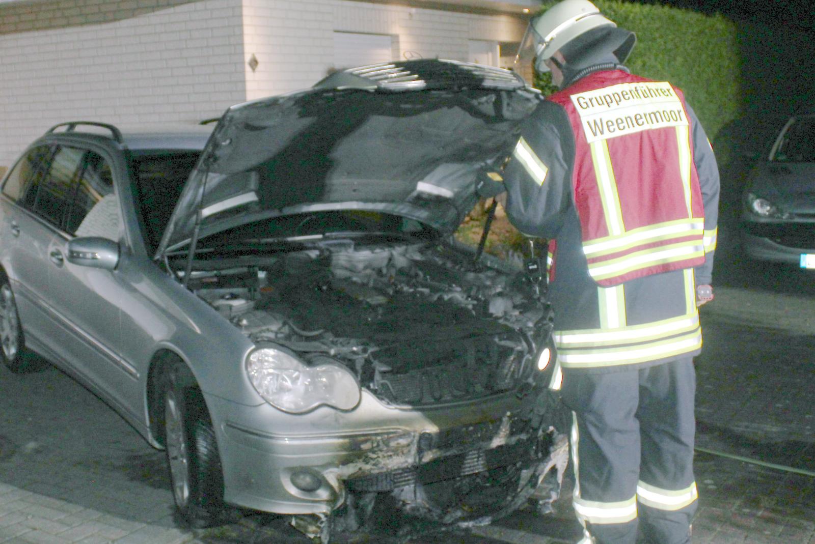 Am Montag um 23.54 Uhr wurden die Feuerwehren aus Weenermoor und Weener zu einem Brandeinsatz in der Dohlengasse in Möhlenwarf alarmiert. Ein auf einem Privatgrundstück abgestellter Mercedes war aus bislang ungeklärter Ursache in Brand geraten.