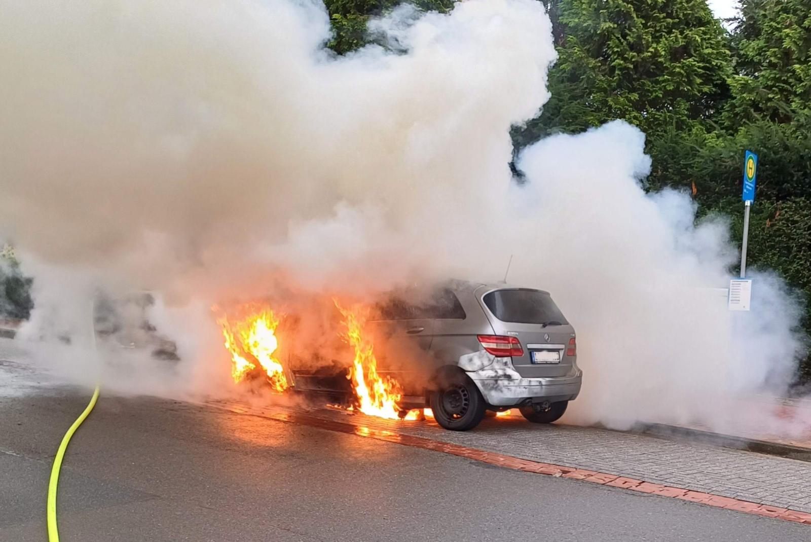 Feuerwehr löscht brennendes Fahrzeug an der Graf-Ulrich-Straße