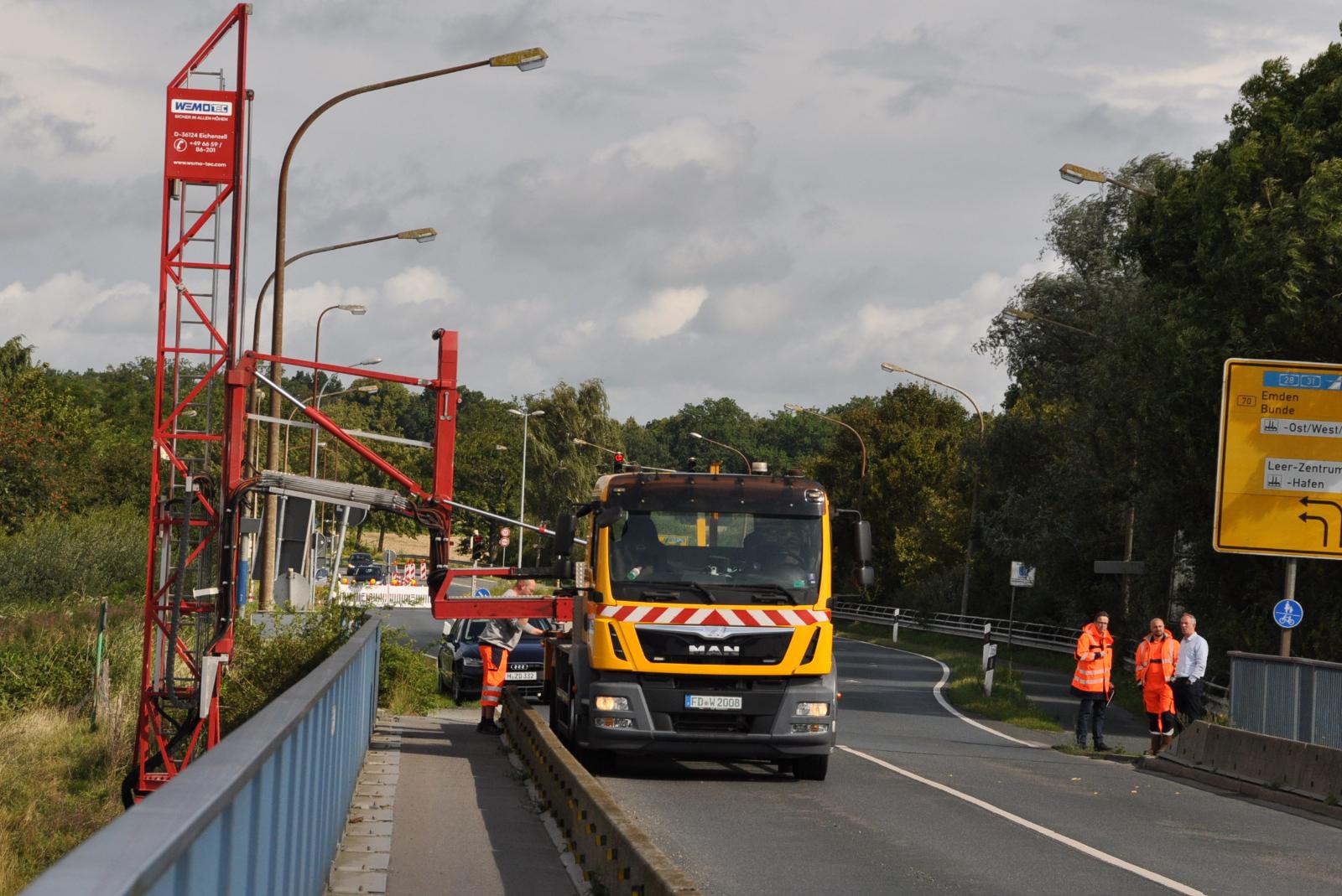 Die Ledabrücke am Stadtrand von Leer muss wegen einer Bauwerksprüfung am 15. und 16. Oktober jeweils von 7 bis 18 Uhr voll gesperrt werden. Das teilt die Stadt Leer mit.