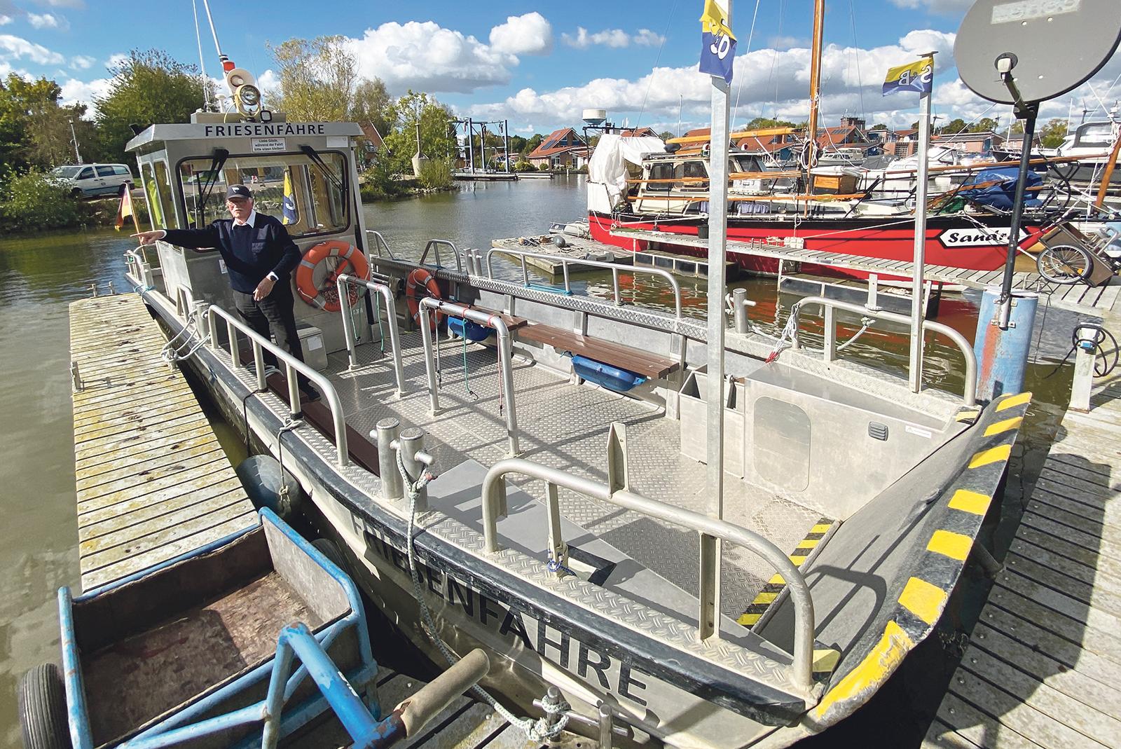 Am Ende gibt es noch einen kurzen Schreckmoment. Als die Friesenfähre am Freitag vom Sportboothafen Weener zur wirklich letzten Überfahrt nach Mitling-Mark starten soll, verzögert sich die Abfahrt. Fähr-Chef Eberhard Lüpkes beobachtet die Szene vom Ufer ...