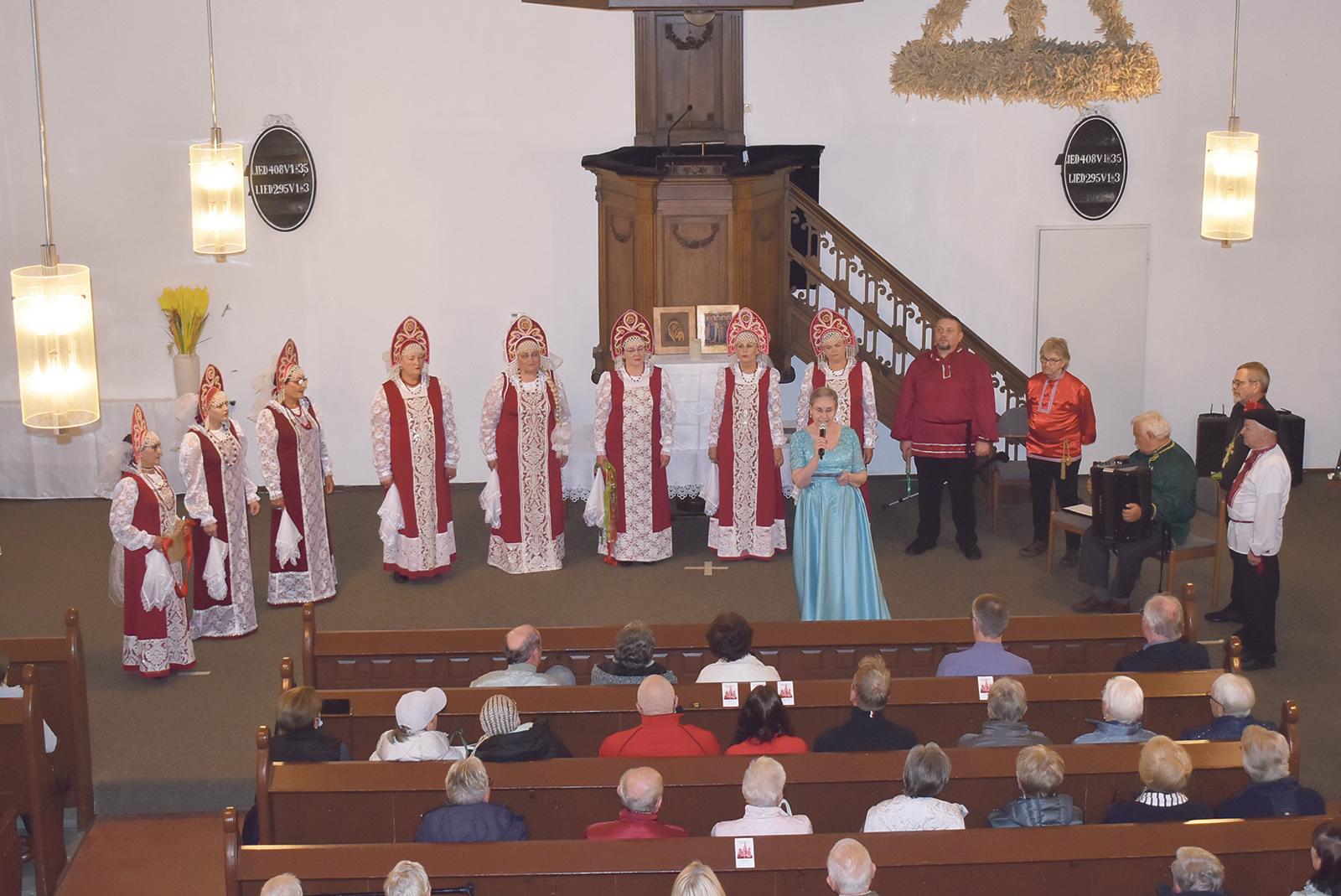 Kräftige Stimmen und Sängerinnen in prächtigen Gewändern füllten am Sonnabend die reformierte Kirche in Möhlenwarf. Zu Gast war der Chor »Russische Seele« mit dem Akkordeonisten Victor Sorokin als Leiter.